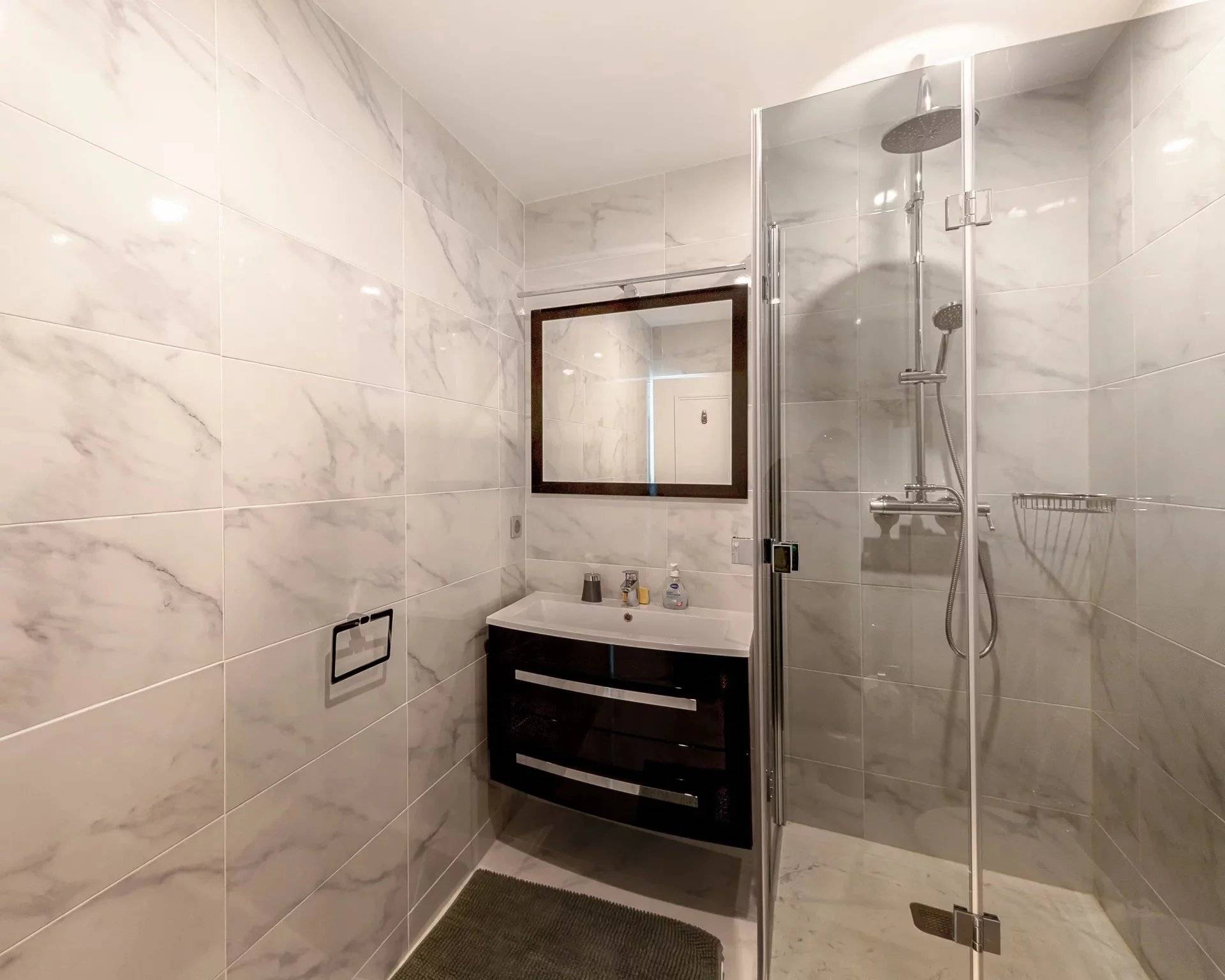Cet appartement de 4 pièces propose un grand espace de vie comprenant un salon et une salle à manger, ainsi qu'une cuisine indépendante entièrement équipée avec des équipements haut de gamme.