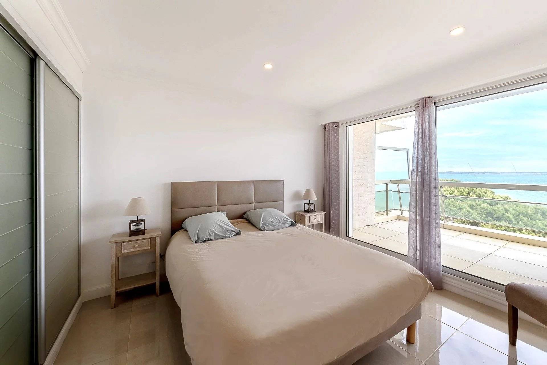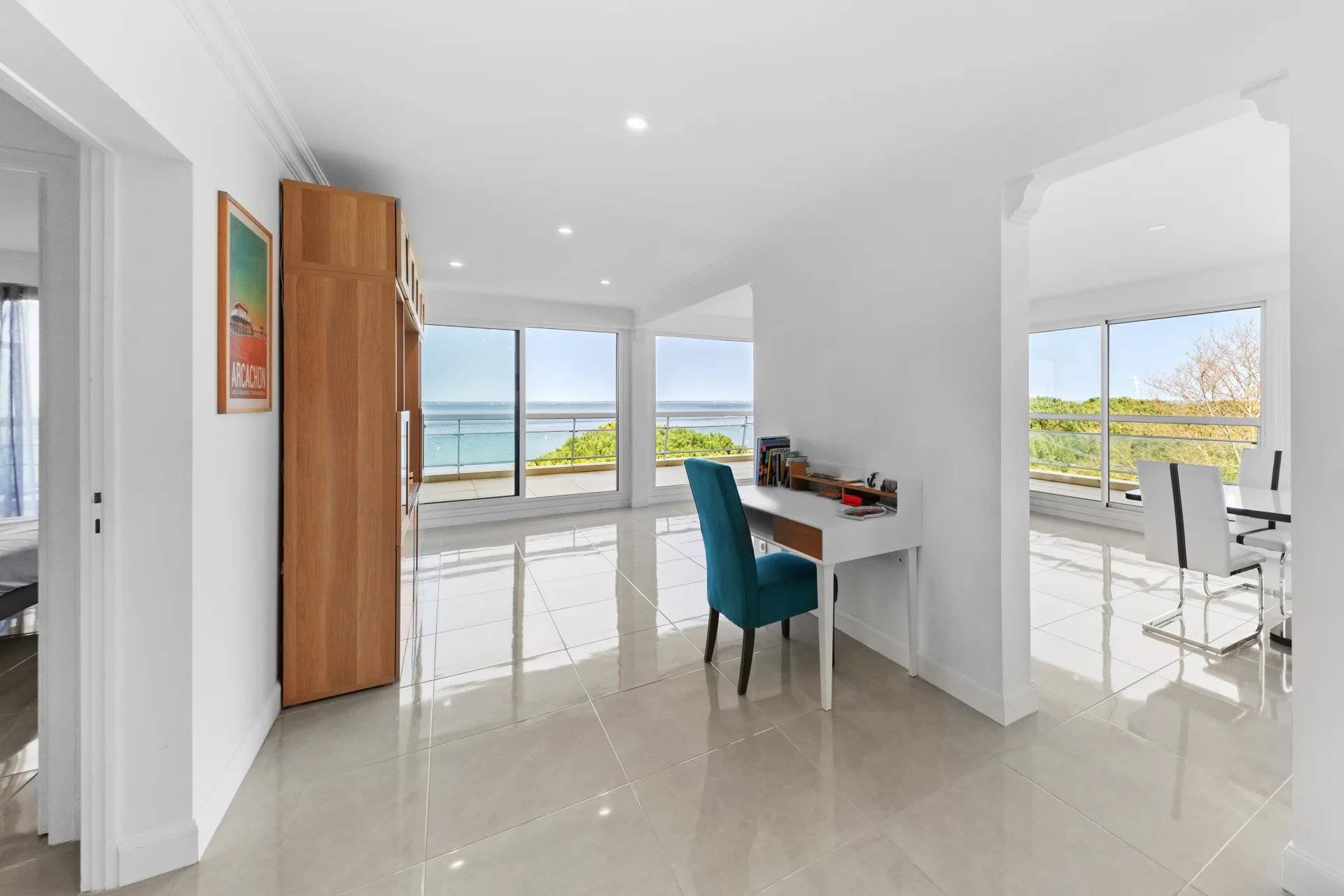 Ce bien d'exception se distingue par sa vaste pièce de vie à double exposition, baignée de lumière naturelle, qui s'ouvre sur une terrasse de 50m² offrant une vue exceptionnelle sur le Bassin d'Arcachon.