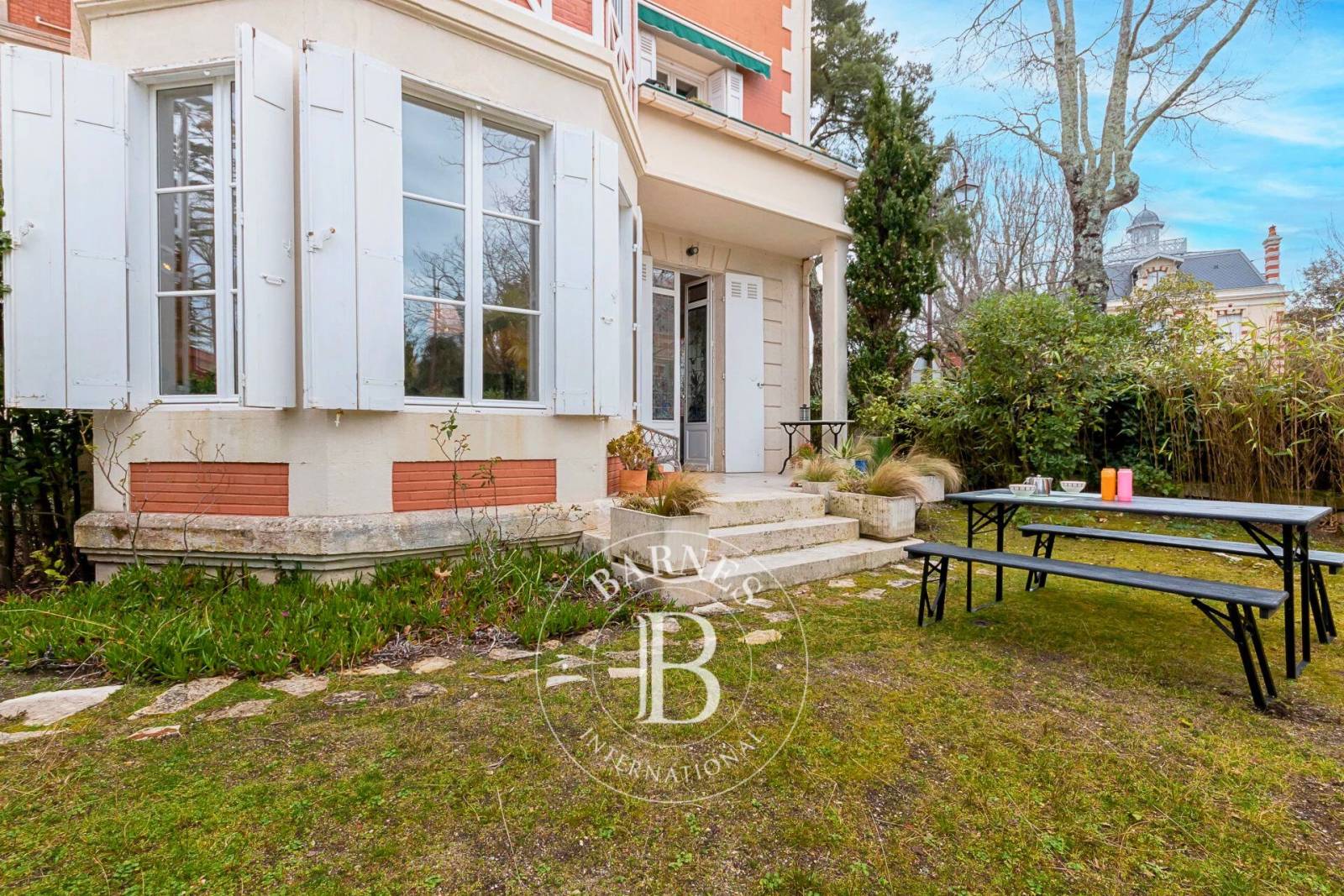 À l’extérieur, un charmant jardin privatif soigneusement entretenu prolonge les espaces intérieurs et invite à profiter pleinement du calme de la Ville d’Hiver d’Arcachon. Ce bien rare comprend également un cellier d’environ 30 m² et une place de parking aérienne.