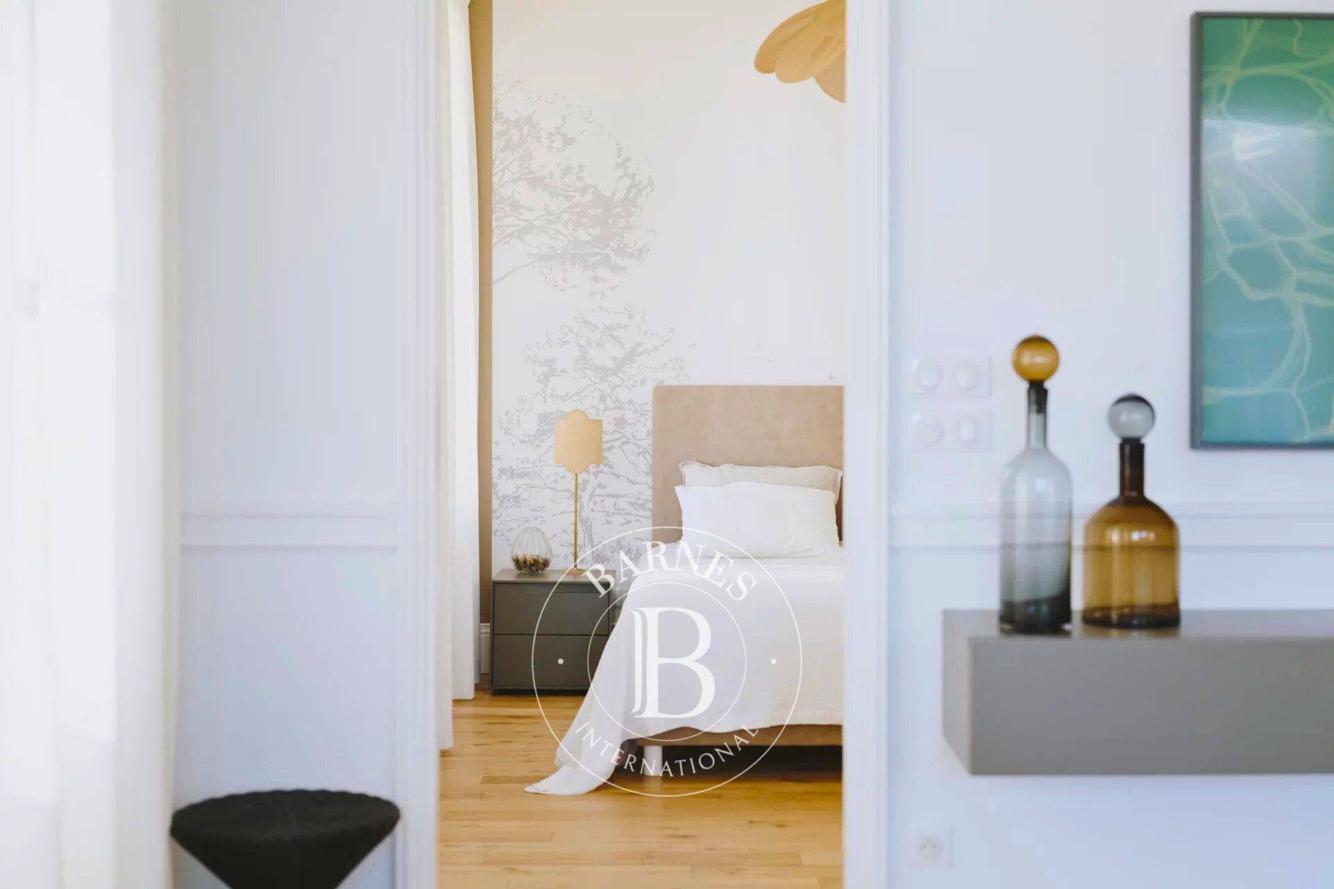 L’espace nuit comprend deux suites parentales, chacune dotée de sa propre salle d’eau et de dressings sur mesure. Des toilettes invités complètent ce bien. Possibilité d’une troisième chambre ou d’une activité commerciale grâce à un joli studio indépendant situé au rez-de-chaussée, en sus.