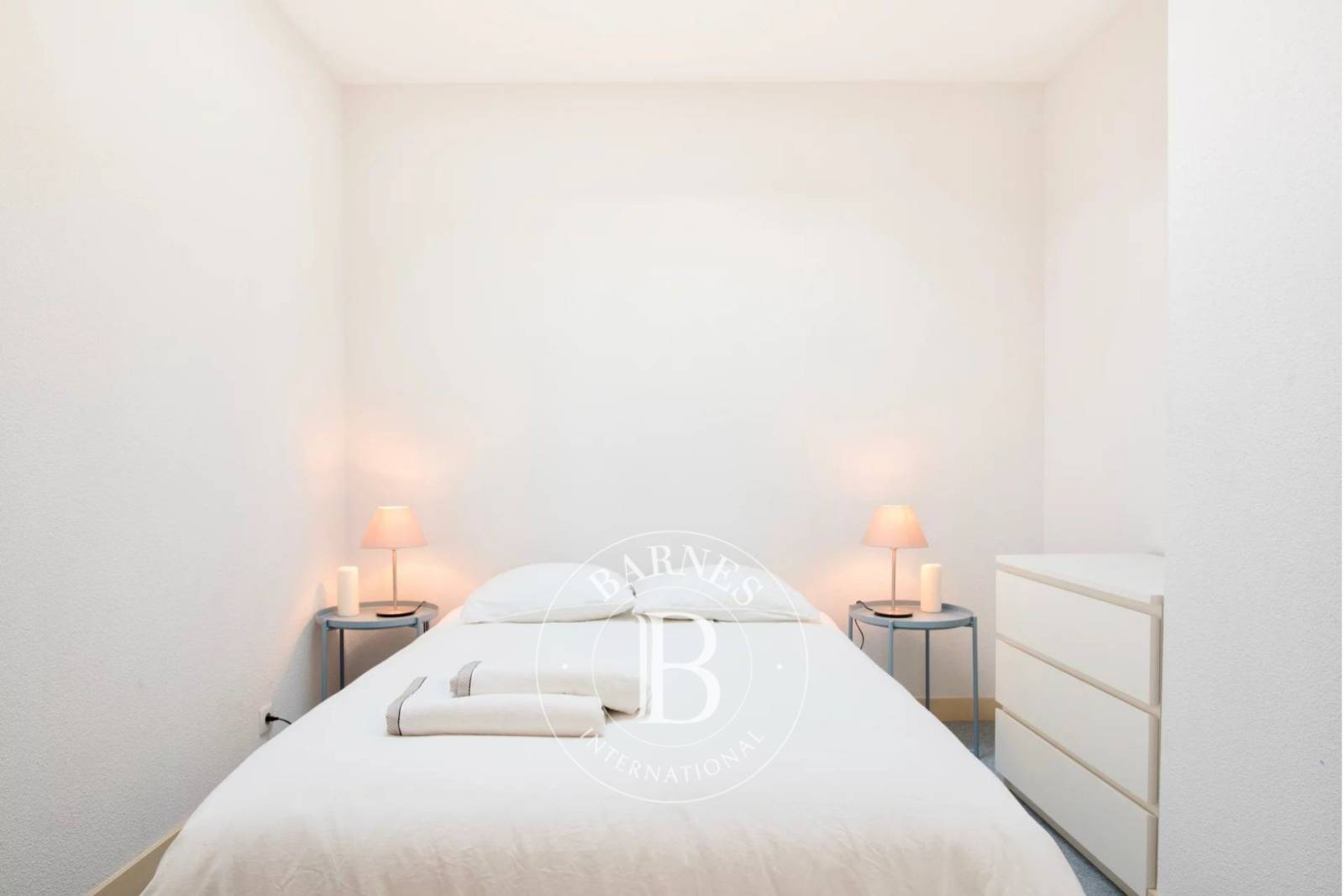 D’une superficie de 80 m², cet appartement s’ouvre sur un séjour avec cuisine ouverte, offrant une vue dégagée sur le Bassin. L’espace de vie a été pensé pour profiter pleinement du panorama et de la luminosité naturelle.