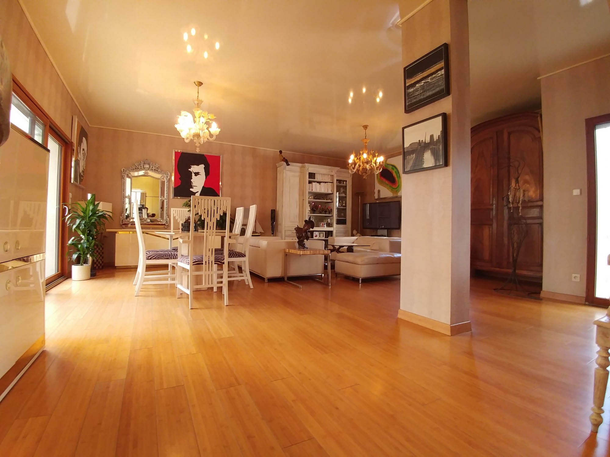 À l'étage : cuisine équipée, un vaste séjour/salon, une chambre avec salle d'eau, toilettes et bureau, une terrasse