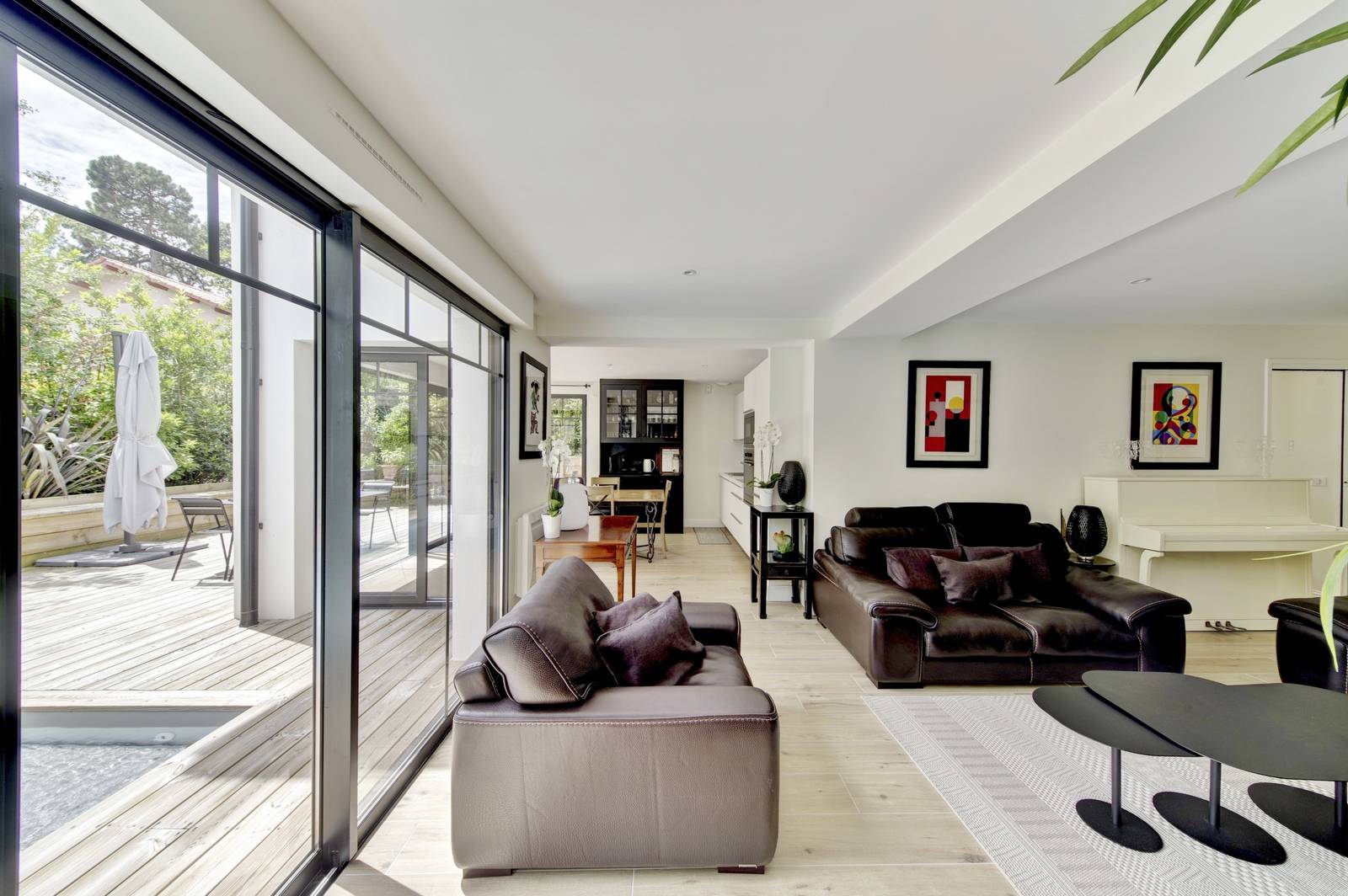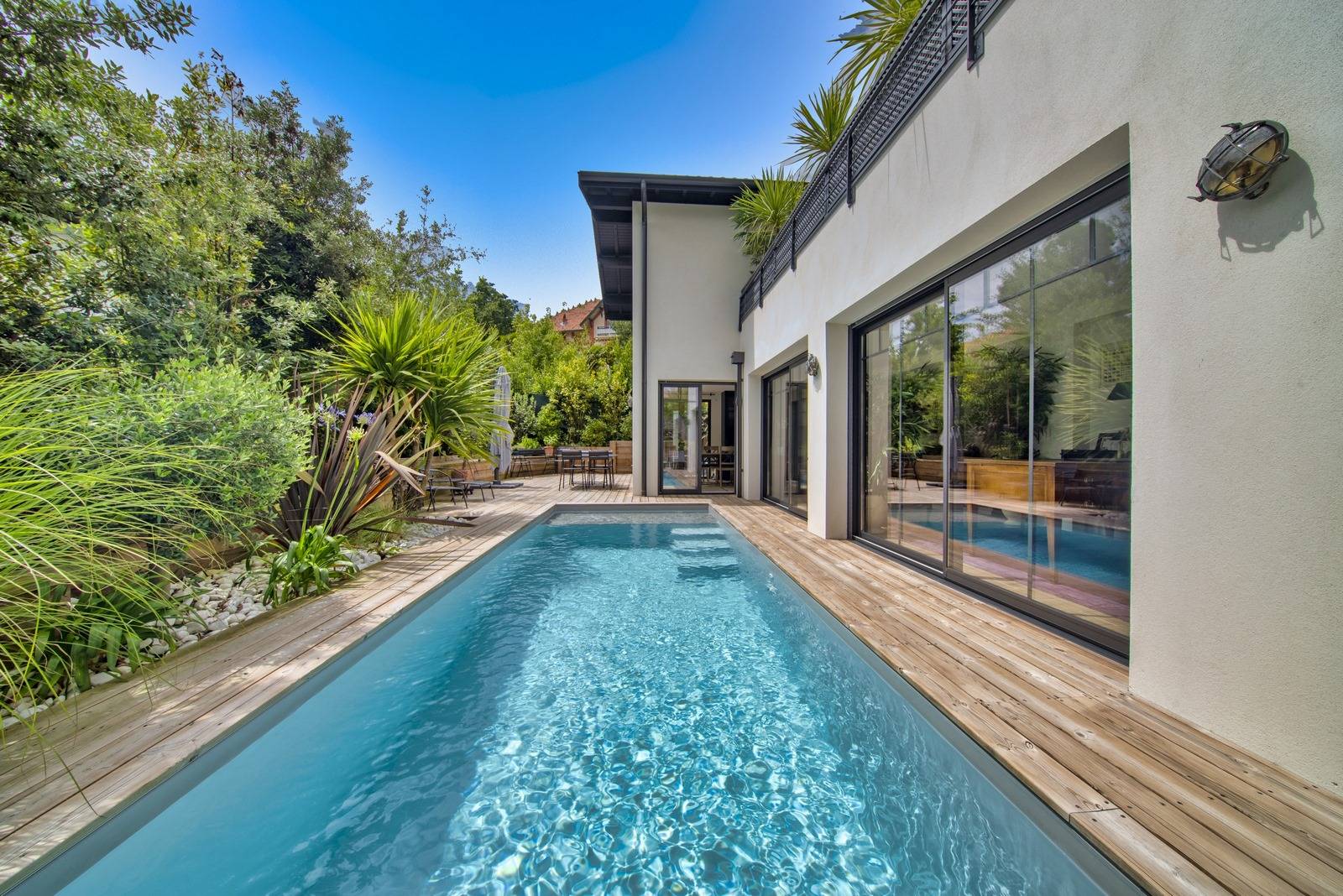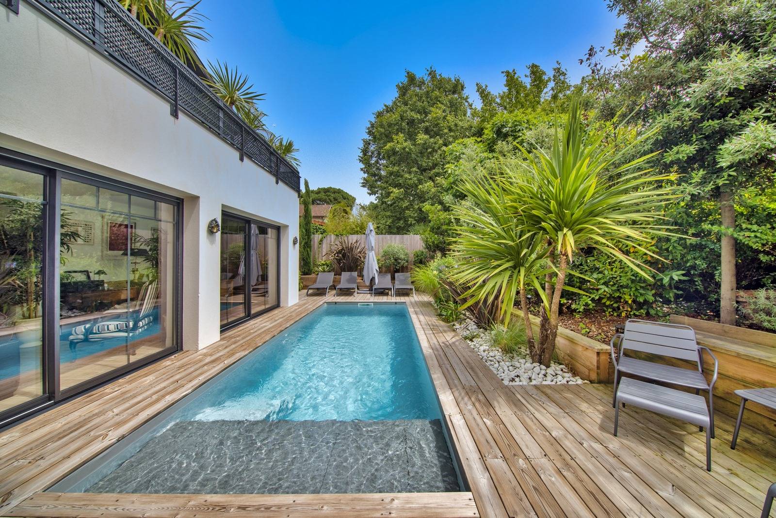 Terrasse plein sud avec piscine chauffée. Joli jardin entièrement paysagé et sans vis-à-vis.