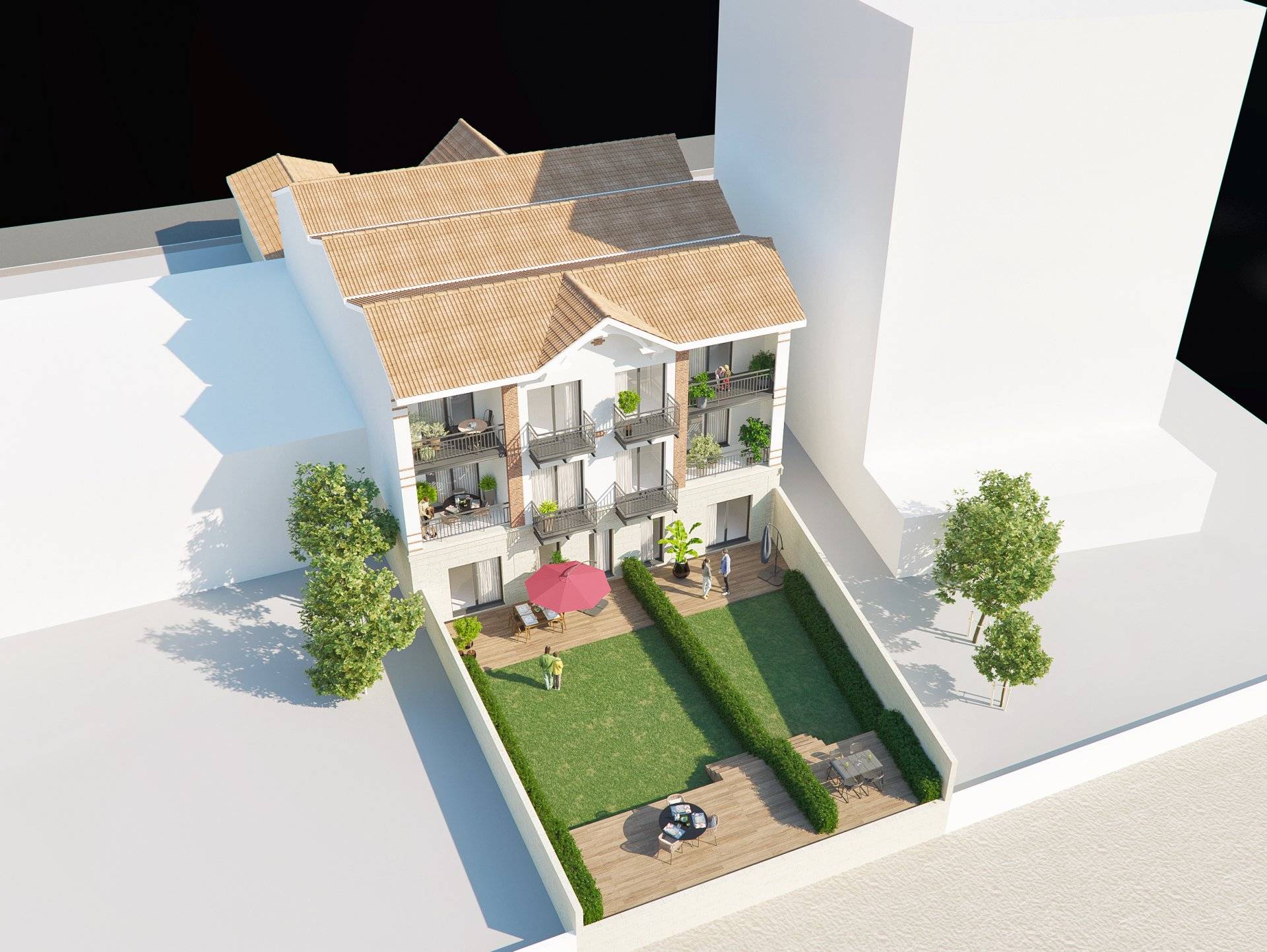 - 14 appartements avec balcon, terrasse ou jardin,