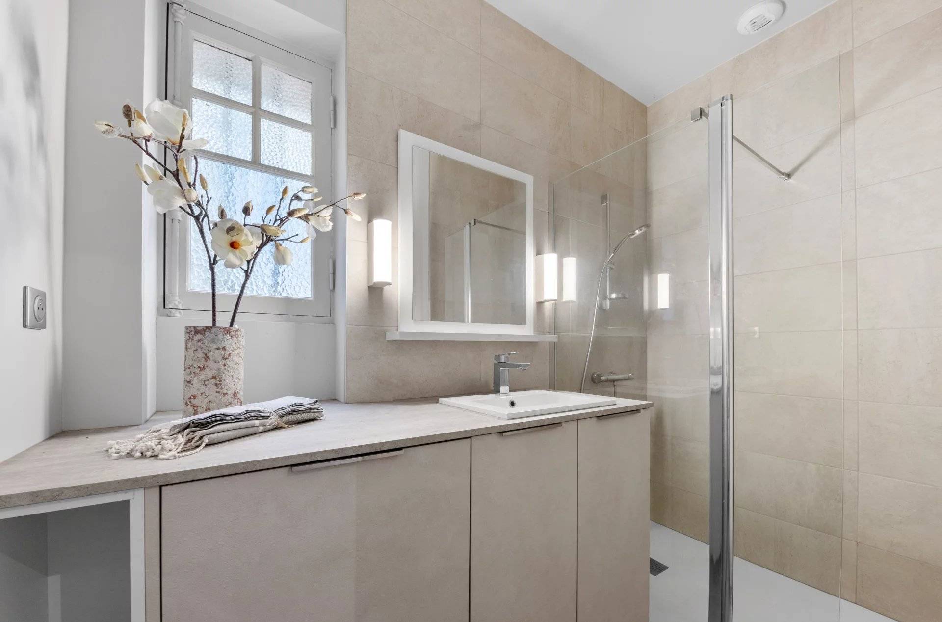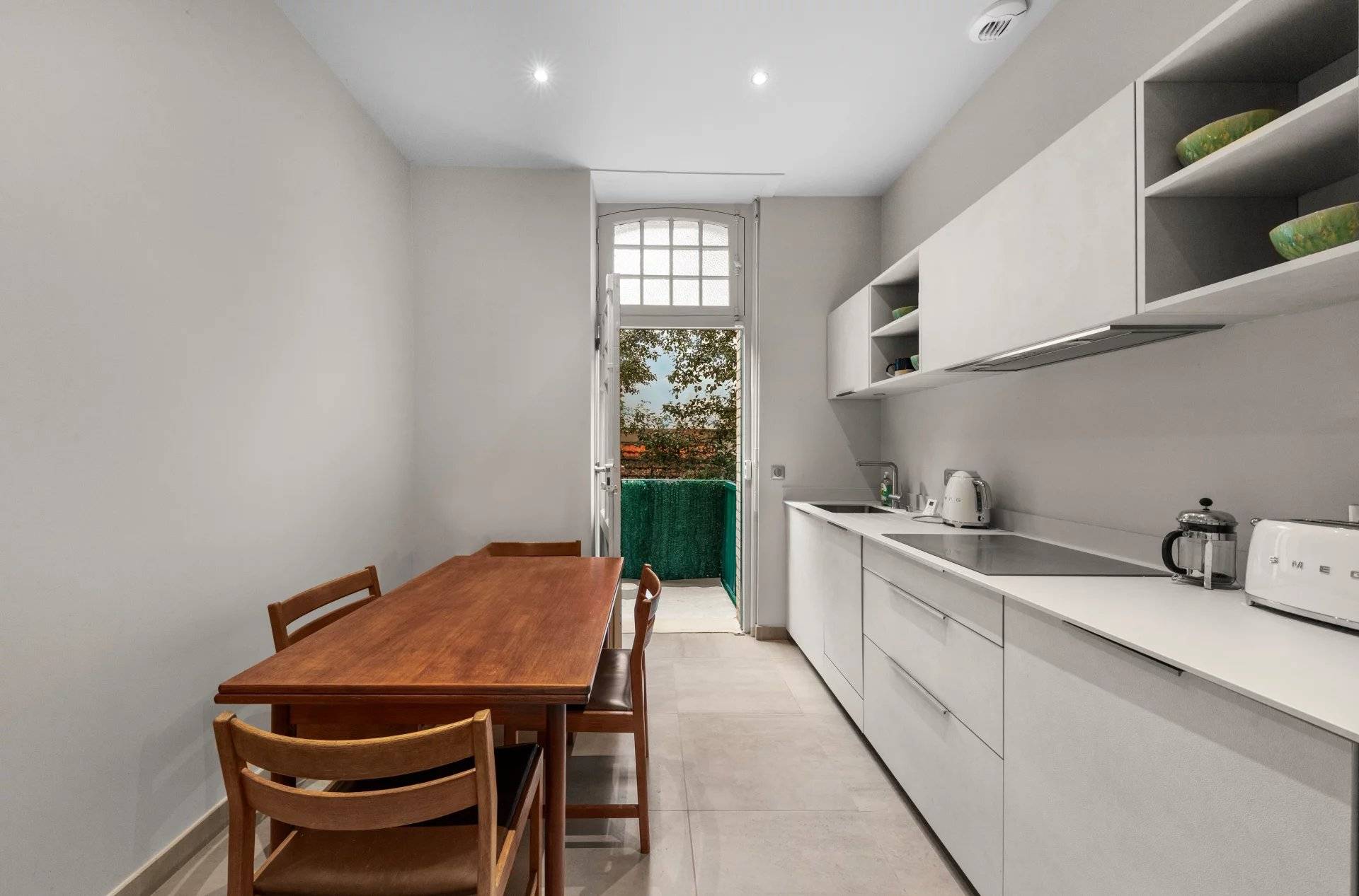 Cet élégant logement, entièrement rénové par un architecte, se trouve en rez-de-chaussée surélevé d'une bâtisse historique pleine de caractère.