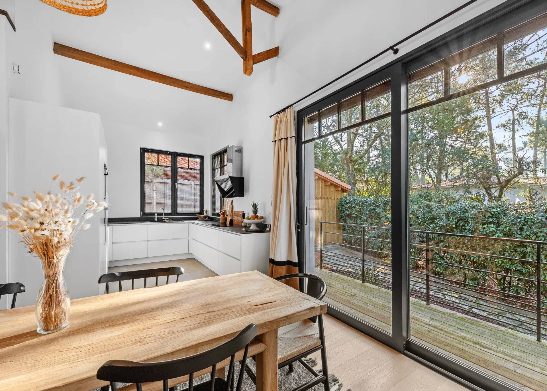 Le séjour cathédrale, lumineux et traversant, s'ouvre sur une terrasse exposée plein Sud. La cuisine ouverte, moderne et entièrement équipée, ajoute une touche de praticité à l'ensemble. L'espace nuit comprend trois chambres, une salle de bains avec WC, une salle d'eau, ainsi qu'un WC séparé.