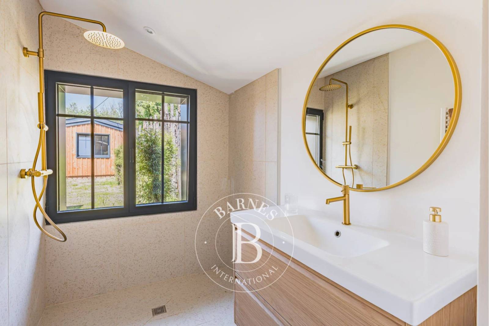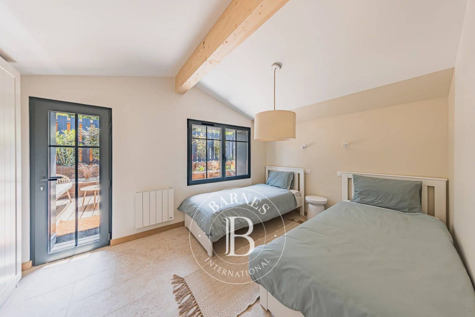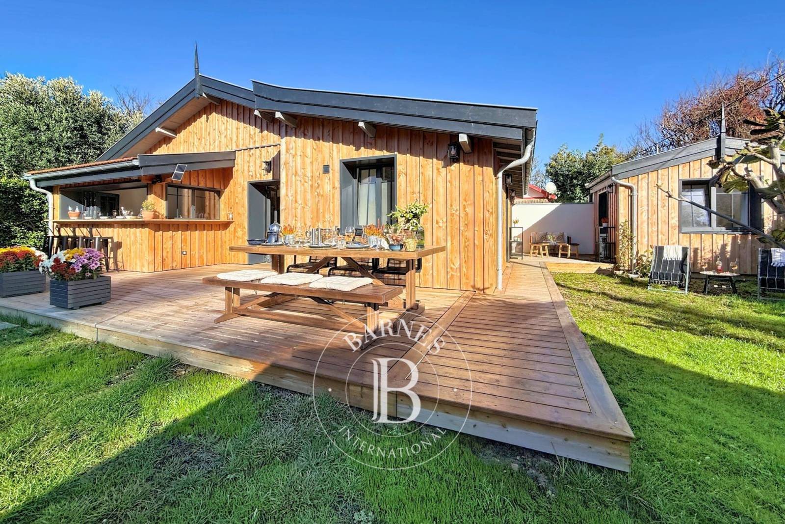 Le bardage bois, la climatisation et les finitions de qualité soulignent une rénovation de standing, respectueuse de l’histoire des lieux.