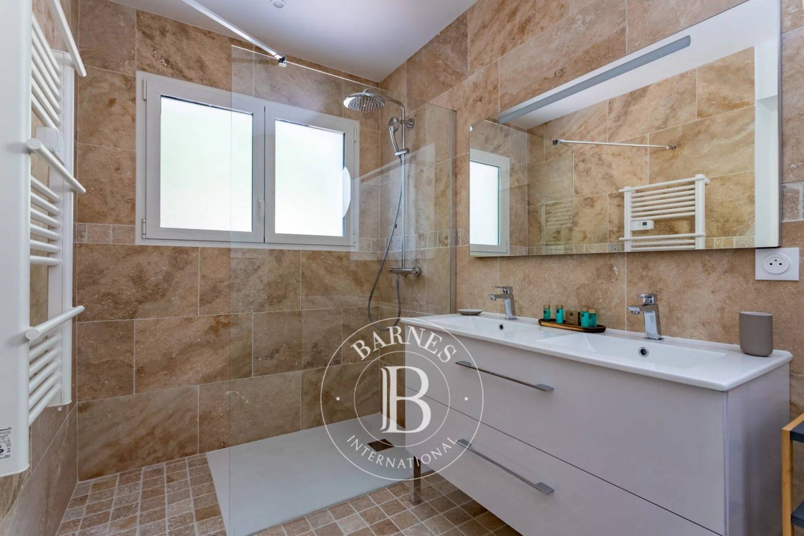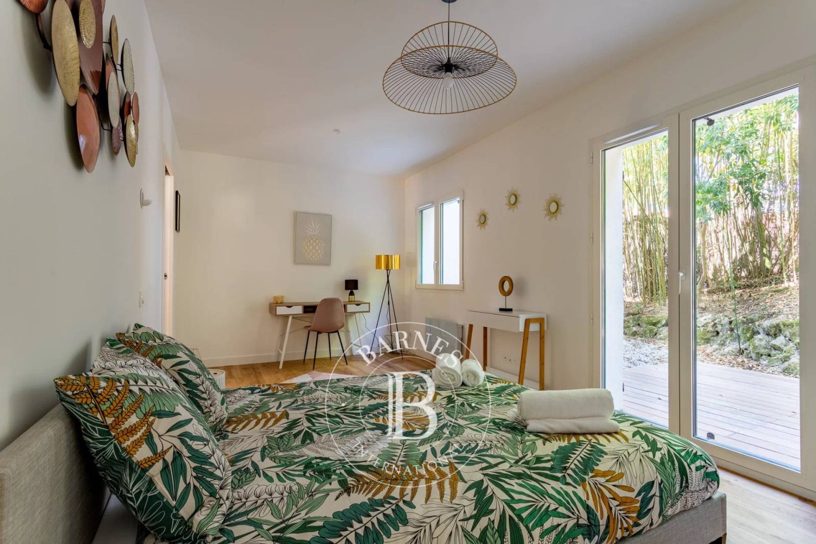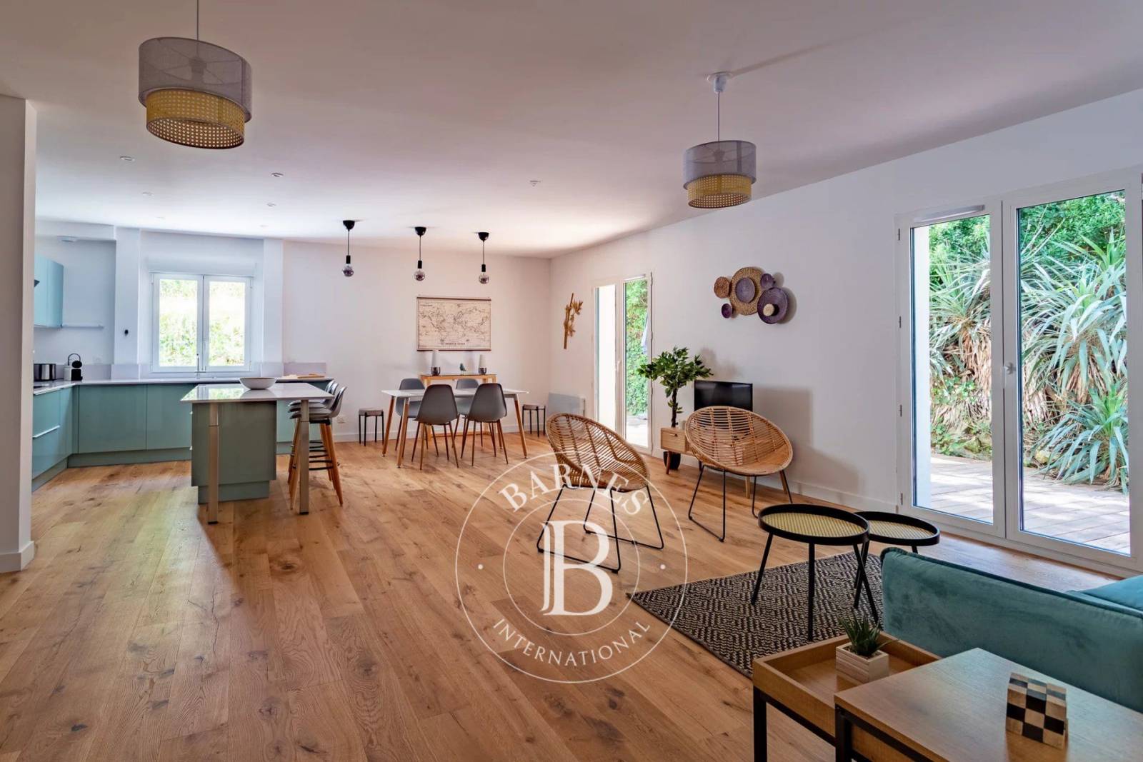 Situé au rez-de-chaussée d'une résidence au style architectural basque authentique, cet appartement se distingue par un généreux séjour de 43 m², une cuisine ouverte équipée et deux chambres, chacune avec sa salle d'eau attenante. Il se caractérise par une spacieuse terrasse d'environ 100 m², exposée plein Sud-Est, idéale pour savourer chaque instant des beaux jours.