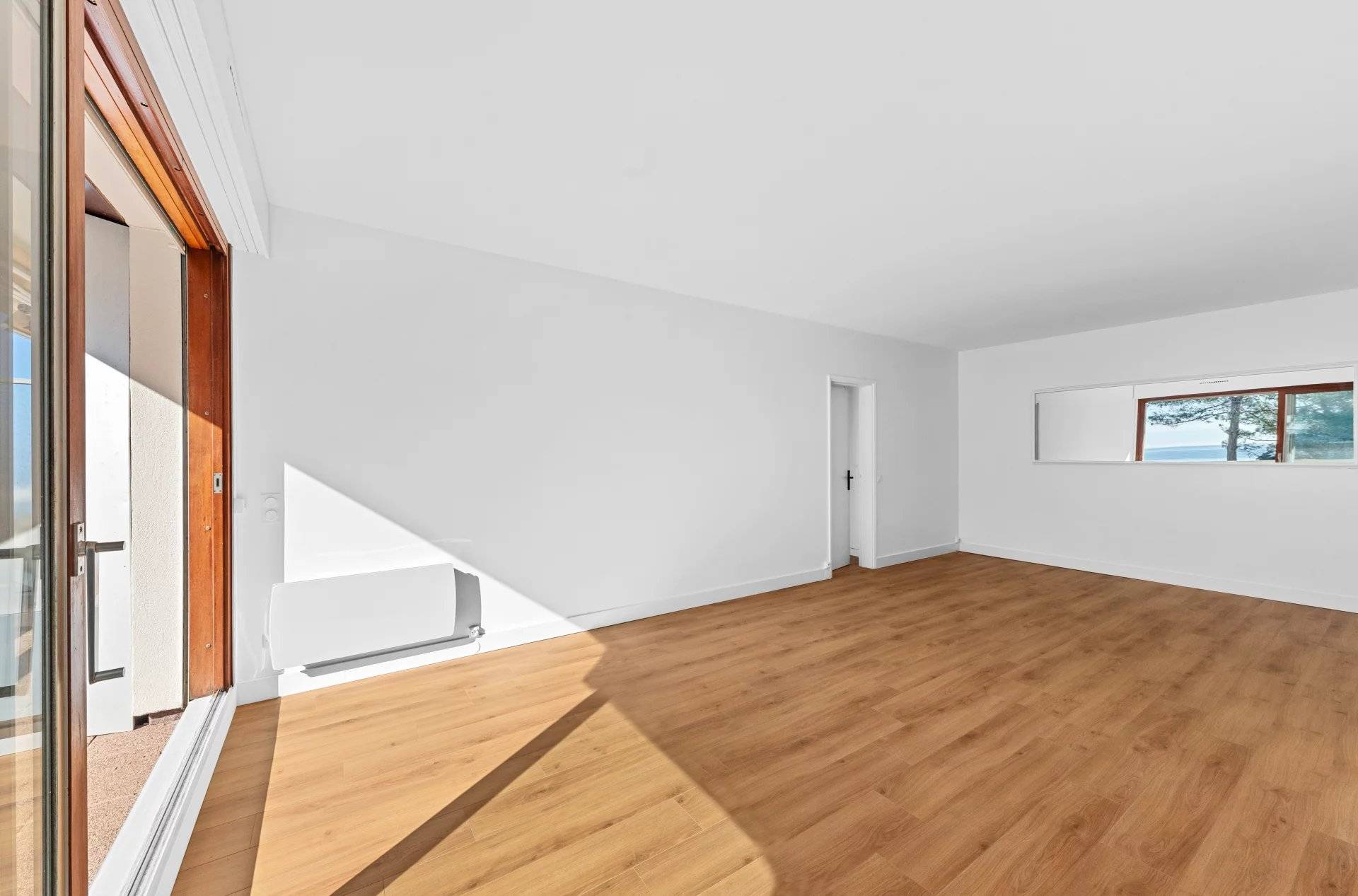 Dès l'entrée, découvrez une cuisine séparée donnant accès à une terrasse ensoleillée, un vaste séjour baigné de lumière, deux chambres, chacune dotée de sa propre salle de bains, également ouvertes sur la terrasse offrant une vue mer exceptionnelle. Toilettes indépendants.