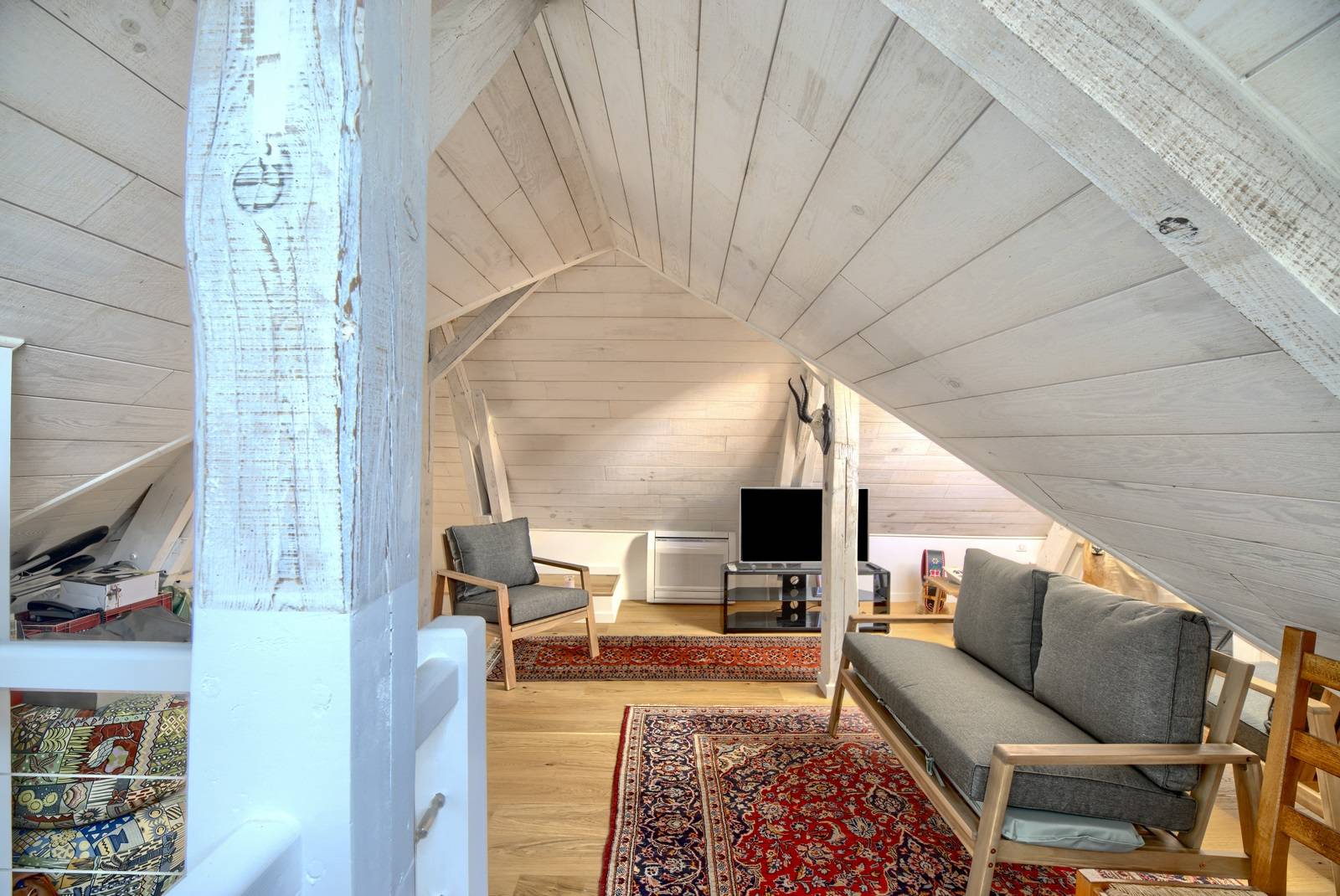 A l'étage, 3 chambres avec salle d'eau toilettes, dressing. A l'étage supérieur vastes combles aménagés.