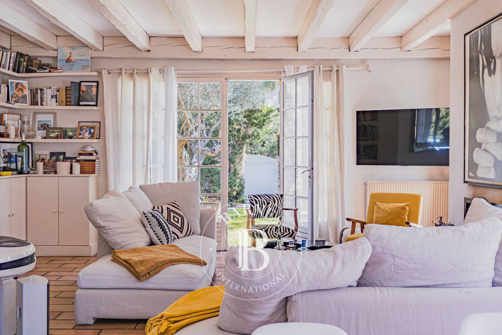 À l’extérieur, la piscine chauffée de 11 x 5 mètres s’intègre parfaitement dans le jardin arboré. Un double garage complète cette propriété, rare sur le Bassin d’Arcachon.