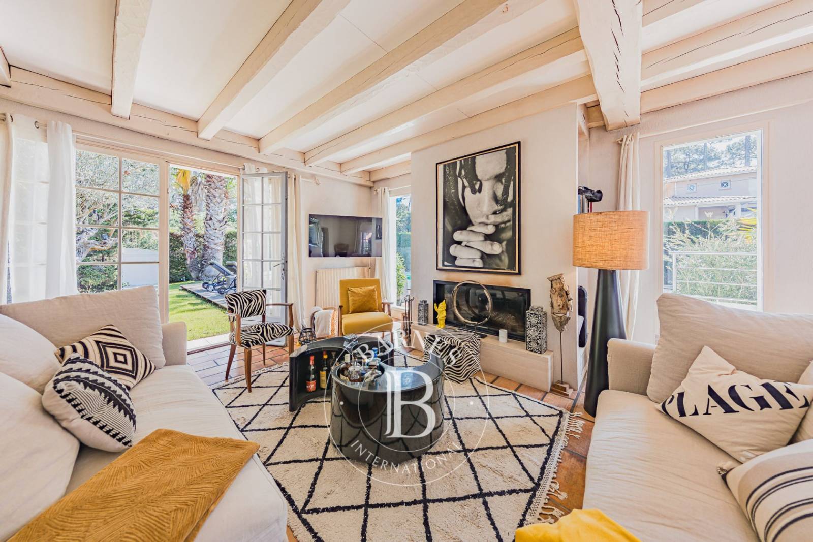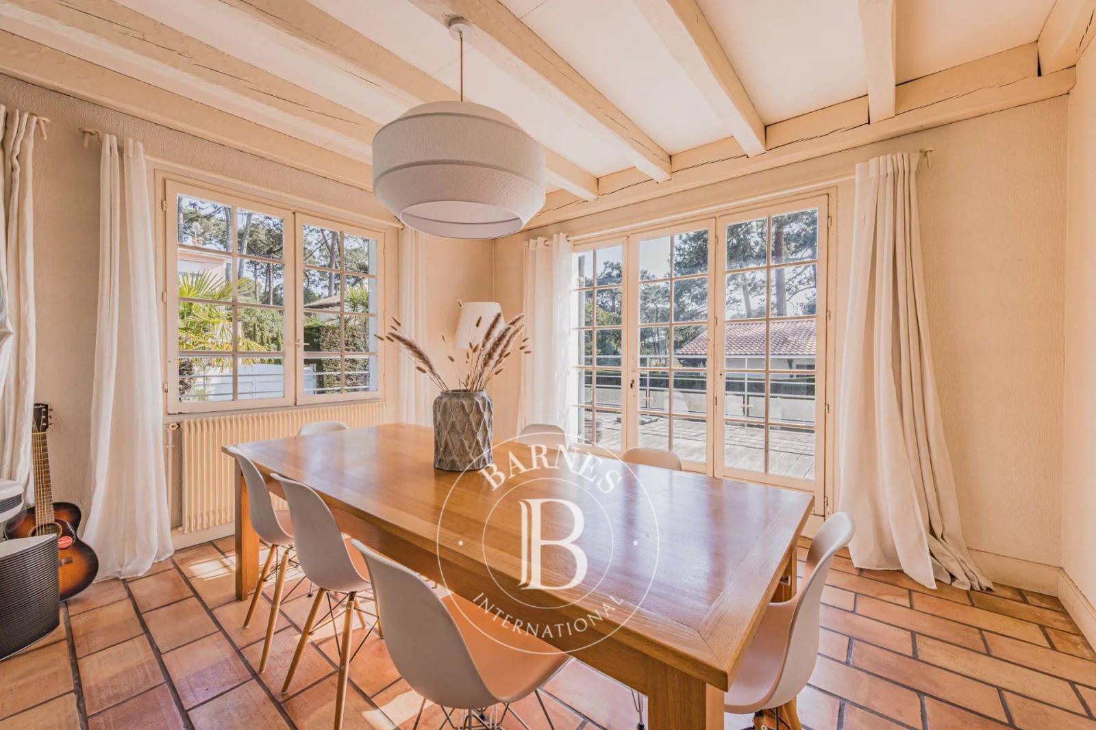 En position dominante, dans un environnement calme et résidentiel, elle offre une vue dégagée sur les pins. À proximité immédiate du Moulleau, des commerces et de la plage, elle profite d’un emplacement recherché sur le Bassin d’Arcachon.