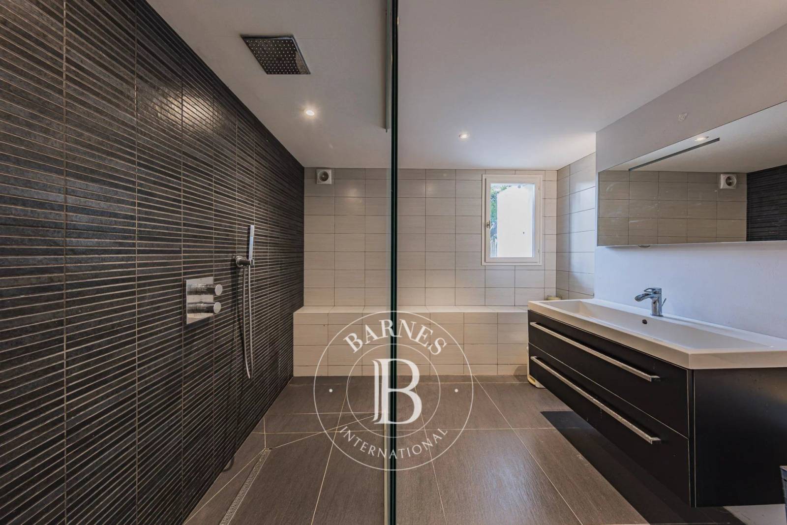 En rez-de-jardin, une chambre supplémentaire dispose de sa propre salle d’eau. Deux grandes pièces à aménager selon vos envies (chambre, salle de sport, salle de jeux) sont également présentes, avec une salle d’eau attenante, permettant la création d’un espace nuit complémentaire.