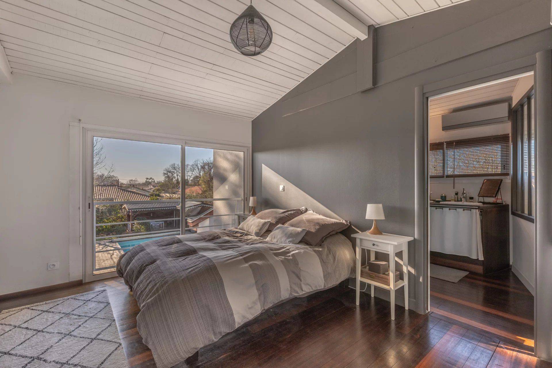 Au rez-de-chaussée, vous serez accueilli par un spacieux séjour avec cheminée, une cuisine équipée et aménagée, tous deux ouverts sur le jardin et la grande piscine chauffée. La luminosité caractérise cette belle maison d'architecte. Trois chambres avec deux salles d'eau et un garage carrelé complètent harmonieusement cet espace.