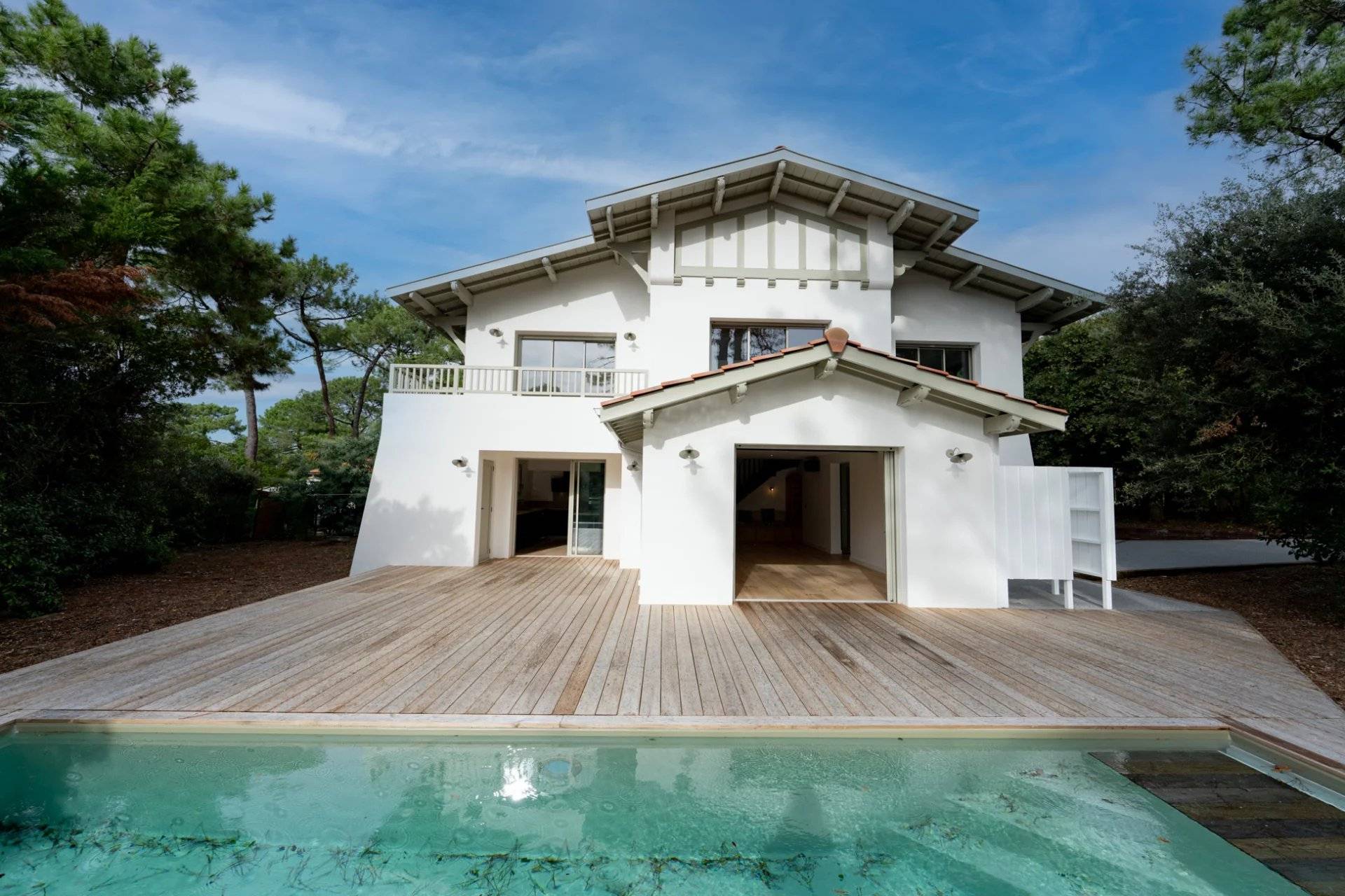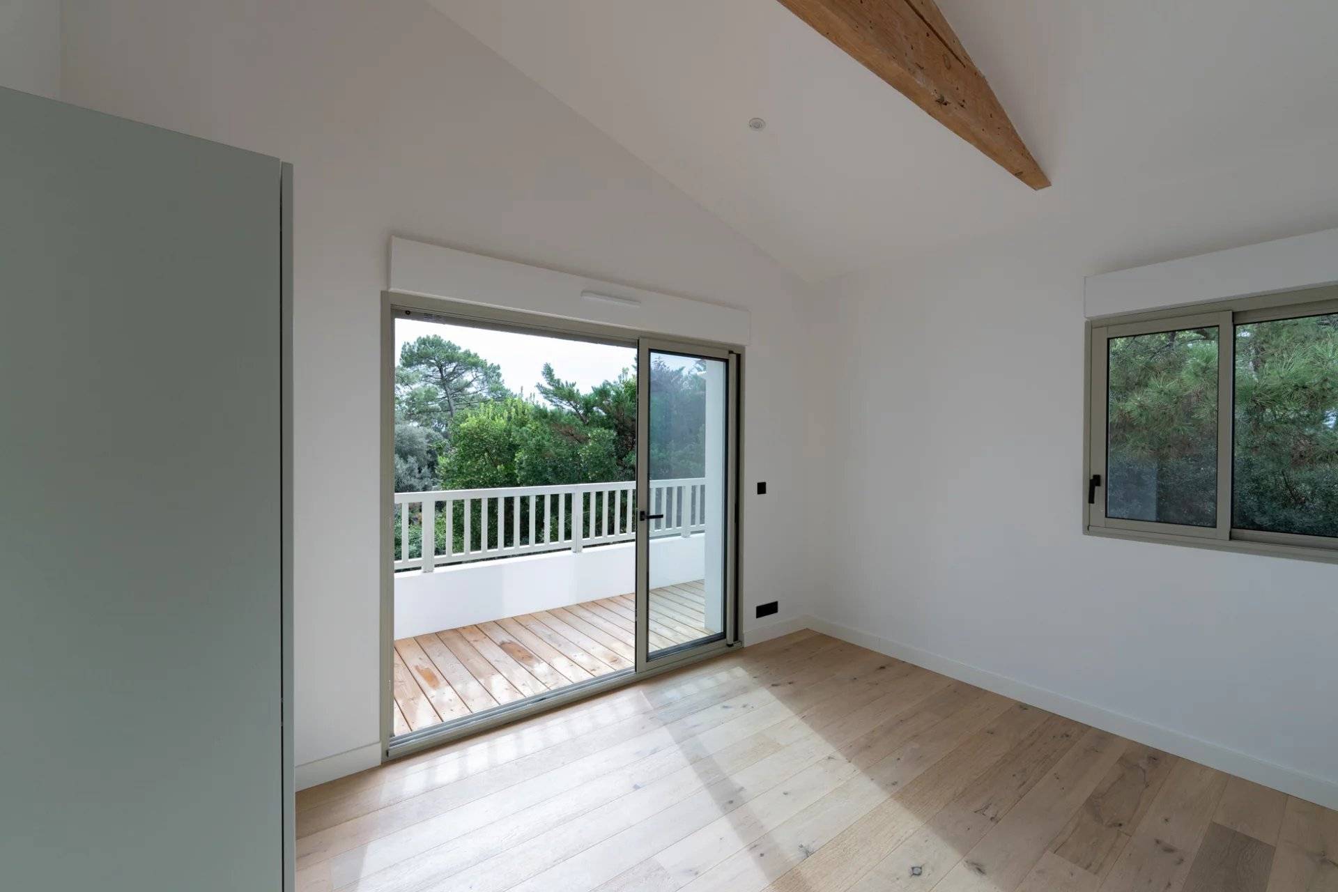 À l'étage, trois vastes chambres, dont l'une bénéficie d'un balcon offrant une vue imprenable sur les pins. L'une d'entre elles dispose de sa propre salle d'eau pour plus d'intimité. Une salle de bain avec baignoire et douche, ainsi qu'un WC sur le palier, contribuent au confort des deux autres chambres.