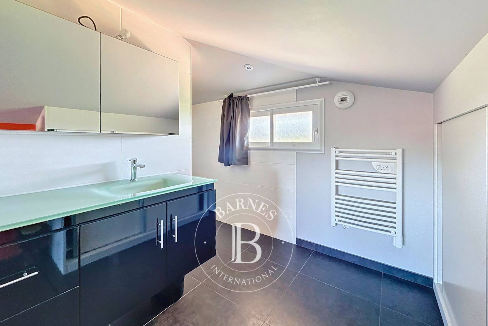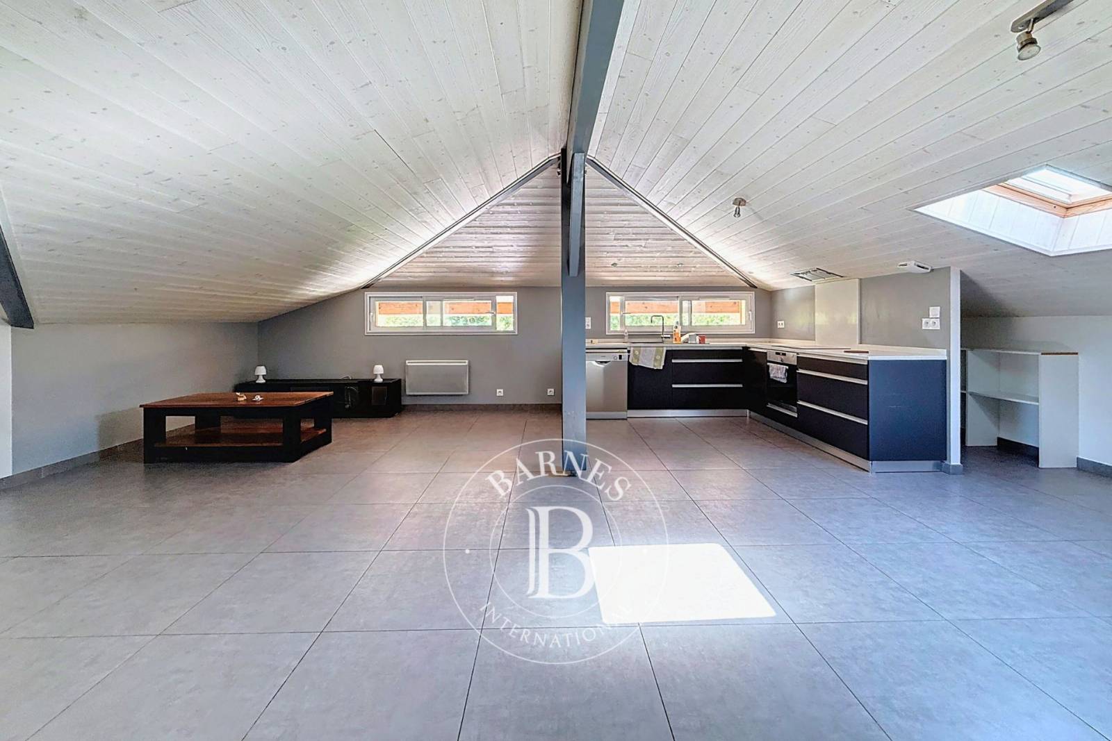 Une dépendance de 80 m², divisée en deux espaces indépendants, ouvre des possibilités d’aménagement selon les projets. Un garage et un espace de stockage adapté à un bateau ou à un véhicule de collection viennent compléter l’ensemble.