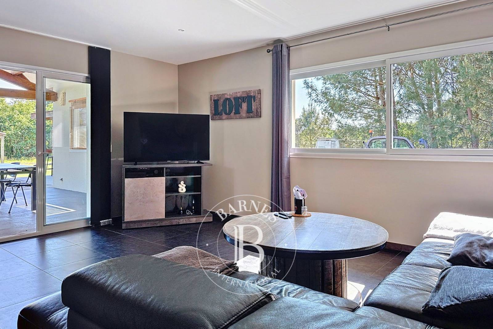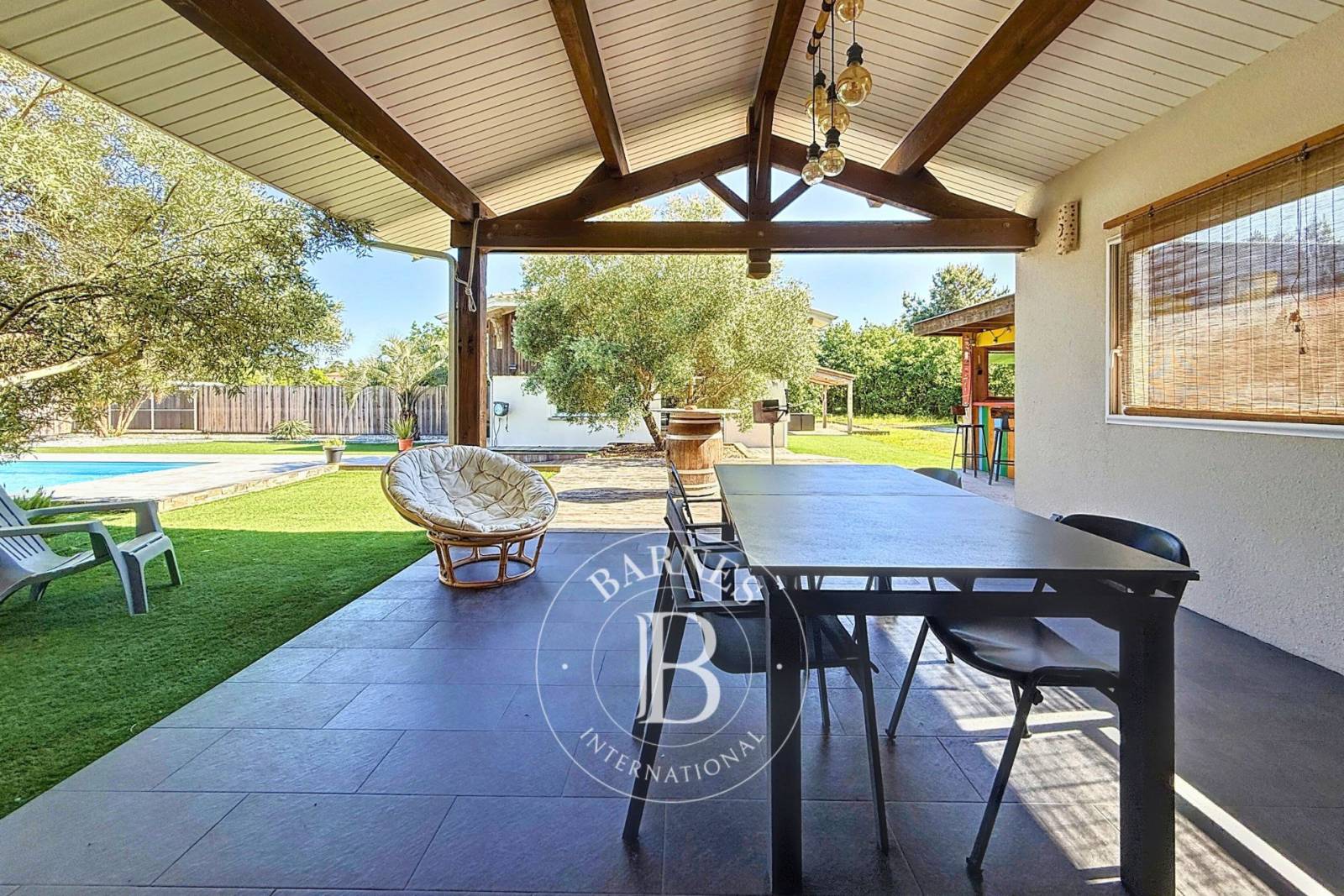 À l’extérieur, la propriété s’organise autour d’une terrasse bien exposée, d’une piscine, d’une cuisine d’été couverte et d’un boulodrome, dans une atmosphère calme et arborée, à l’abri des regards.