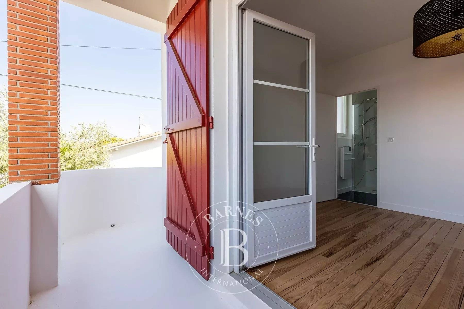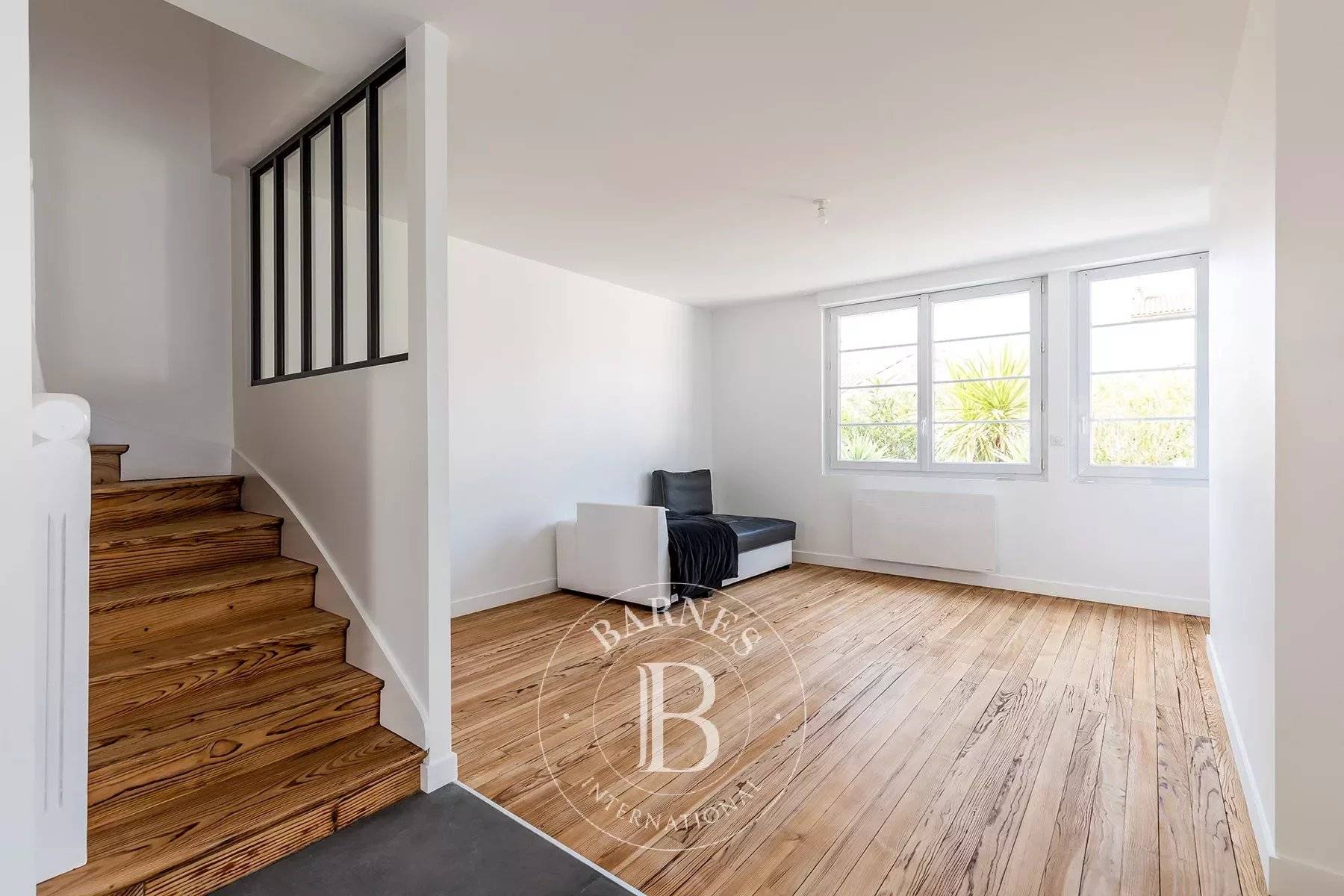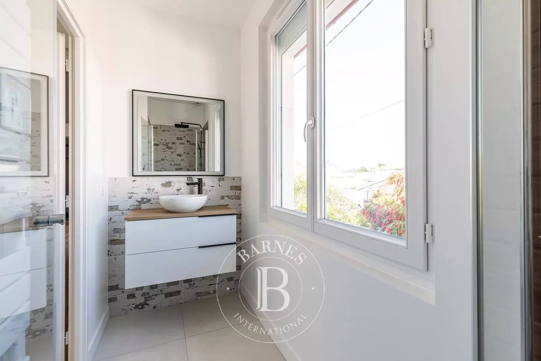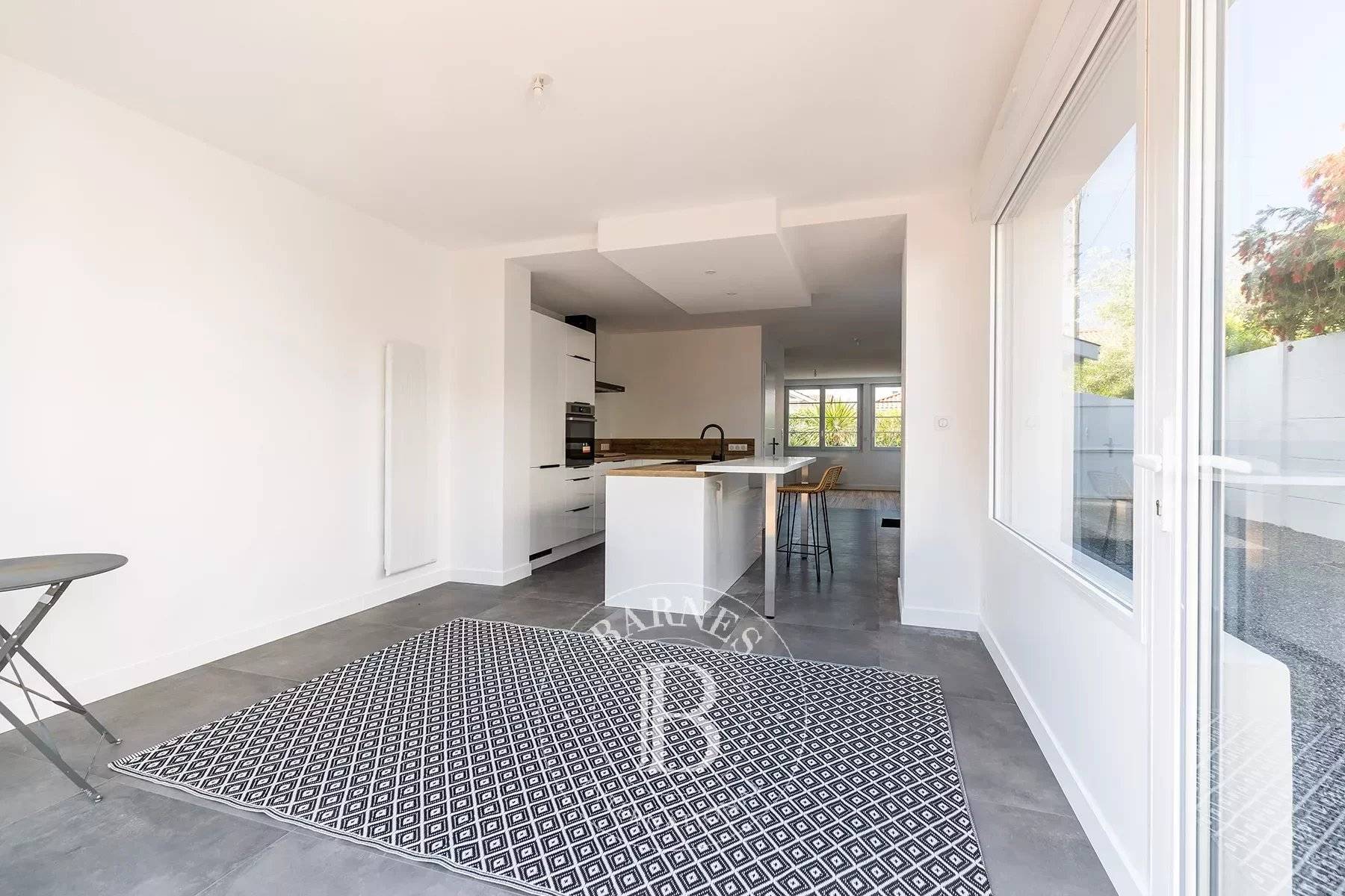 Joli ensemble entièrement rénové très récemment situé en plein coeur du pittoresque et animé quartier de l'Aiguillon, à proximité de tous les commerces, des petits et sympathiques restaurants, de la plage et du Port d'Arcachon. La villa principale - très lumineuse - offre une grande pièce de vie traversante (modulable surune partie en séjour, salon ou chambre), toilettes, une belle cuisine aménagée et équipée dînatoire/salle à manger ouvrant sur la piscine plein sud. A l'étage, deux chambres - dont une avec joli balcon et salle d'eau -, un bureau ou une chambre d'appoint, une seconde salle d'eau, toilettes. Idéal pour recevoir famille ou amis, un pavillon d'invités indépendant avec chambre, pièce de vie et sa cuisine équipée, salle d'eau et toilettes. Pool house/garage à vélos et terrasse couverte (possibilité d'aménager un coin cuisine et salon d'été afin d'optimiser la vie en extérieur). Joli jardin paysager clos, allée voiturière. Une adresse résolument pleine de charme... (le prix indiqué inclus les honoraires d'agence à la charge de l'acquéreur)