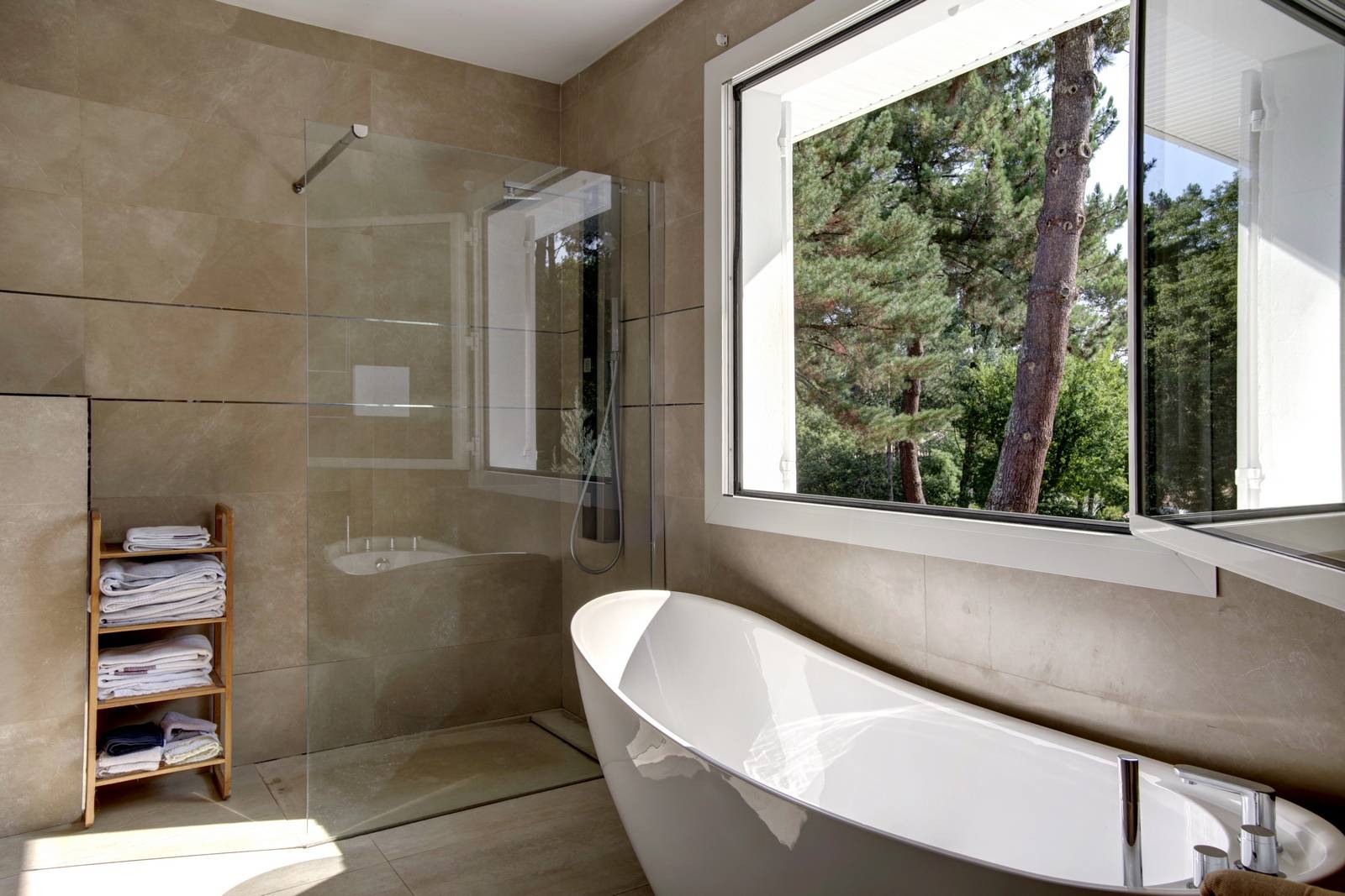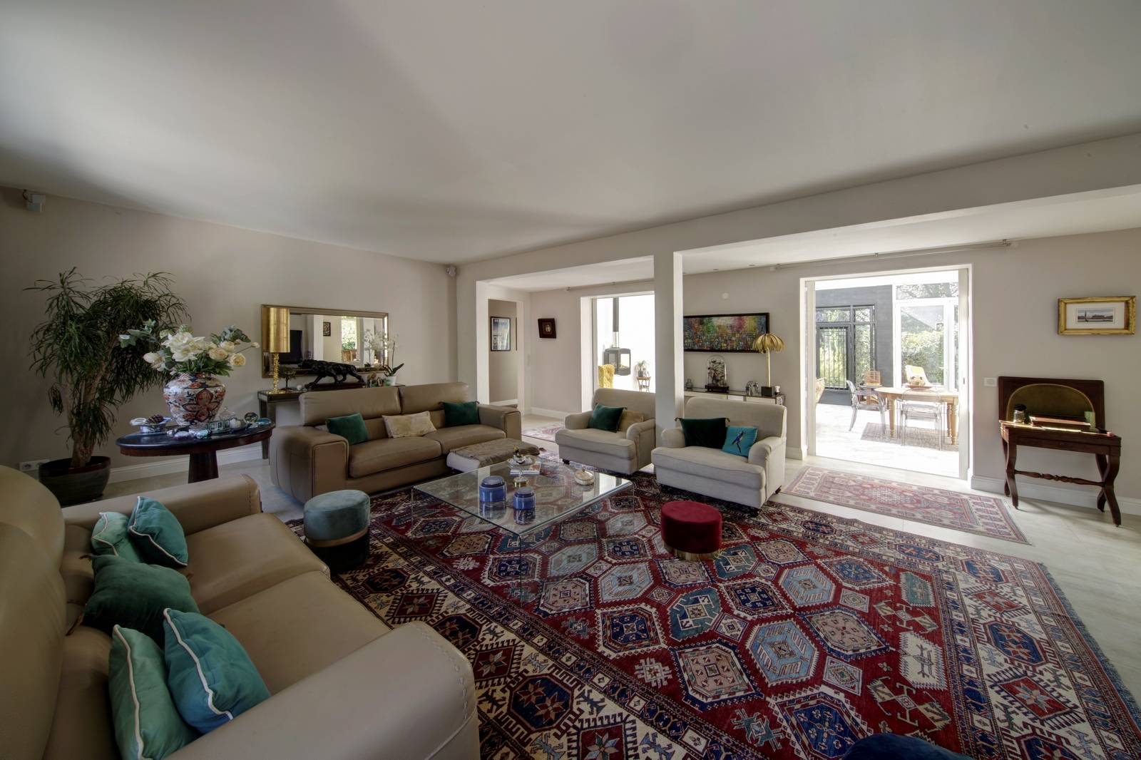 ARCACHON, à 300 mètres de la magnifique plage Pereire, dans un écrin de verdure, au calme et sans vis-à-vis, superbe villa distribuant un vaste séjour cathédrale, un salon, une grande cuisine équipée séparée, 5 chambres, un bureau, une salle de bain et deux salles d'eau, 2 garages, buanderie.