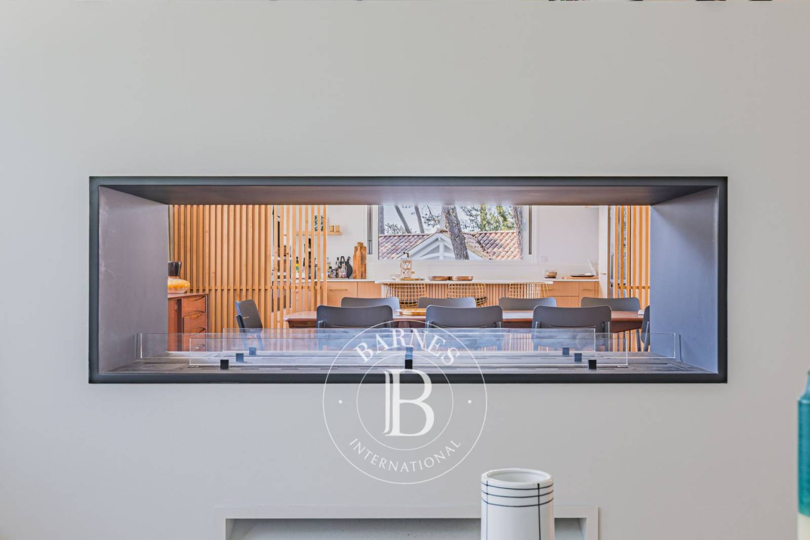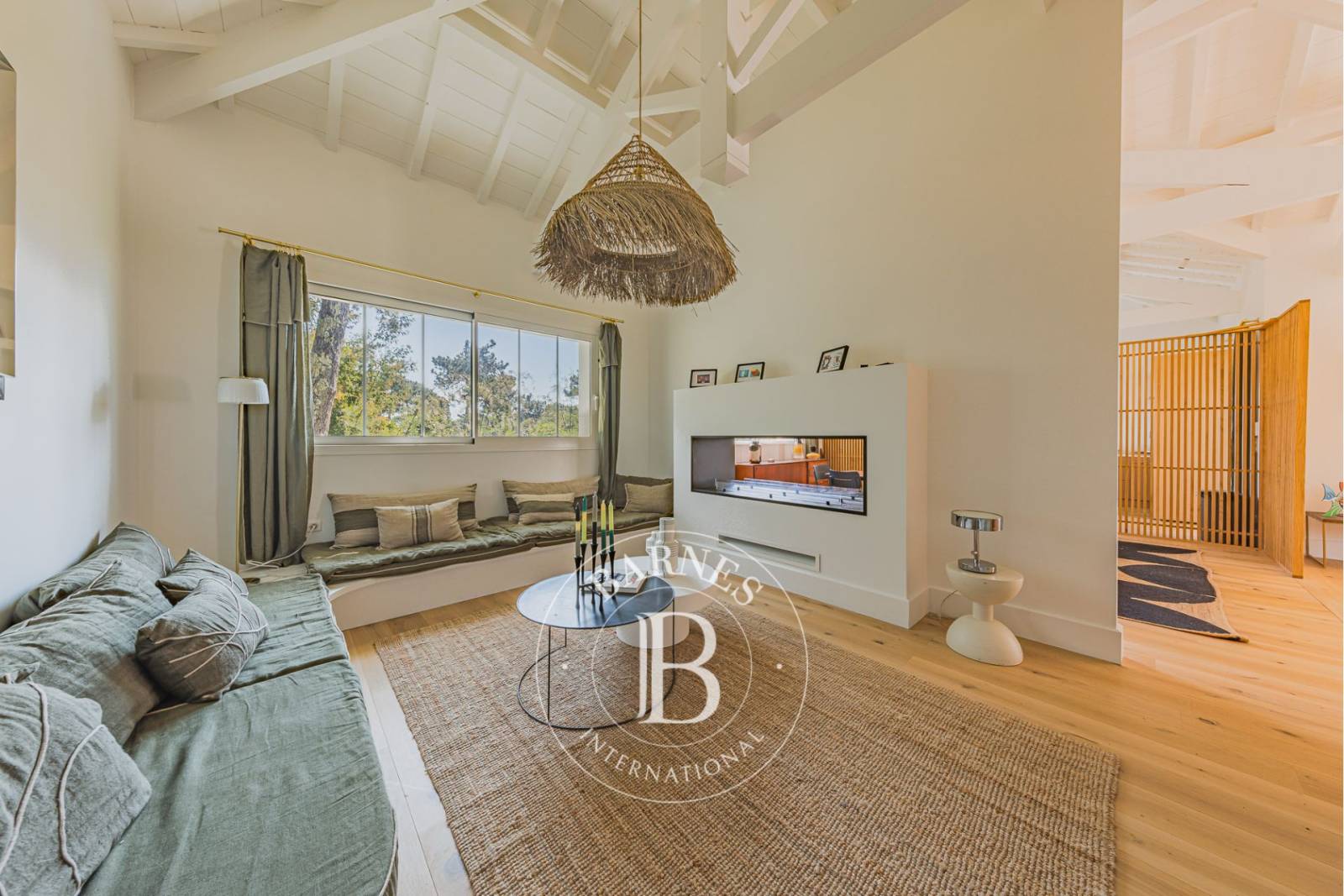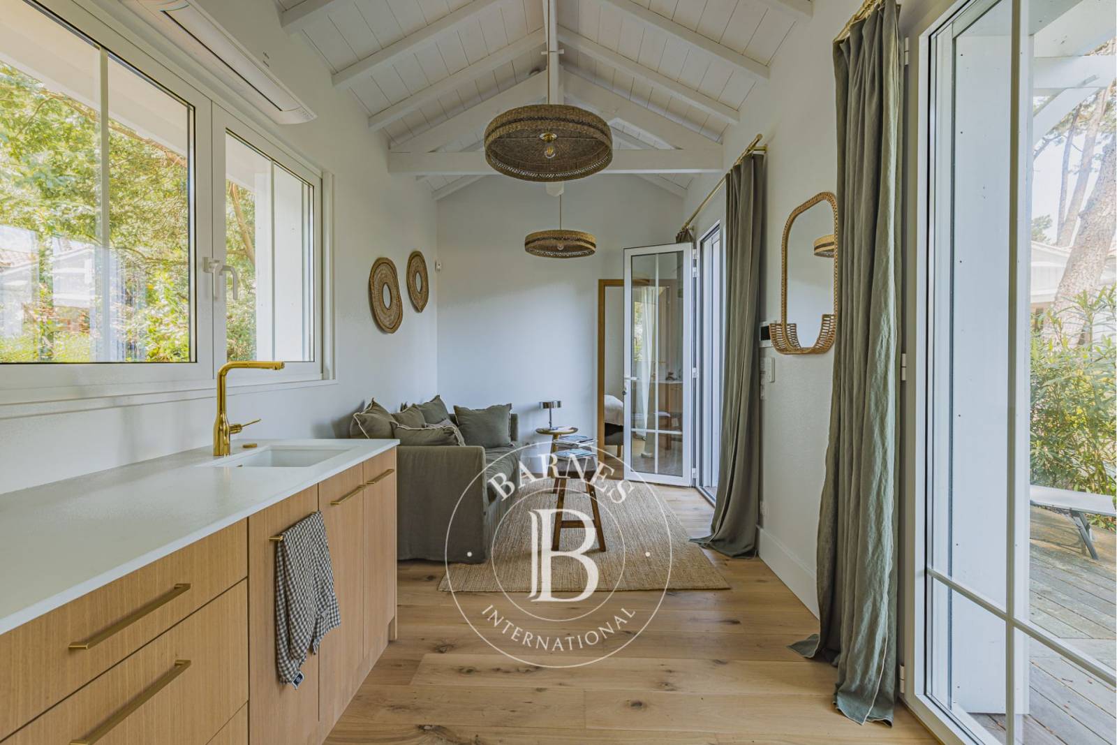 Ce bien rare bénéficie d’un environnement préservé, entouré de pins, avec une vue dégagée sur la forêt et un aperçu sur le Bassin d’Arcachon. Une localisation privilégiée, à quelques pas de l’ambiance authentique du village et du marché.