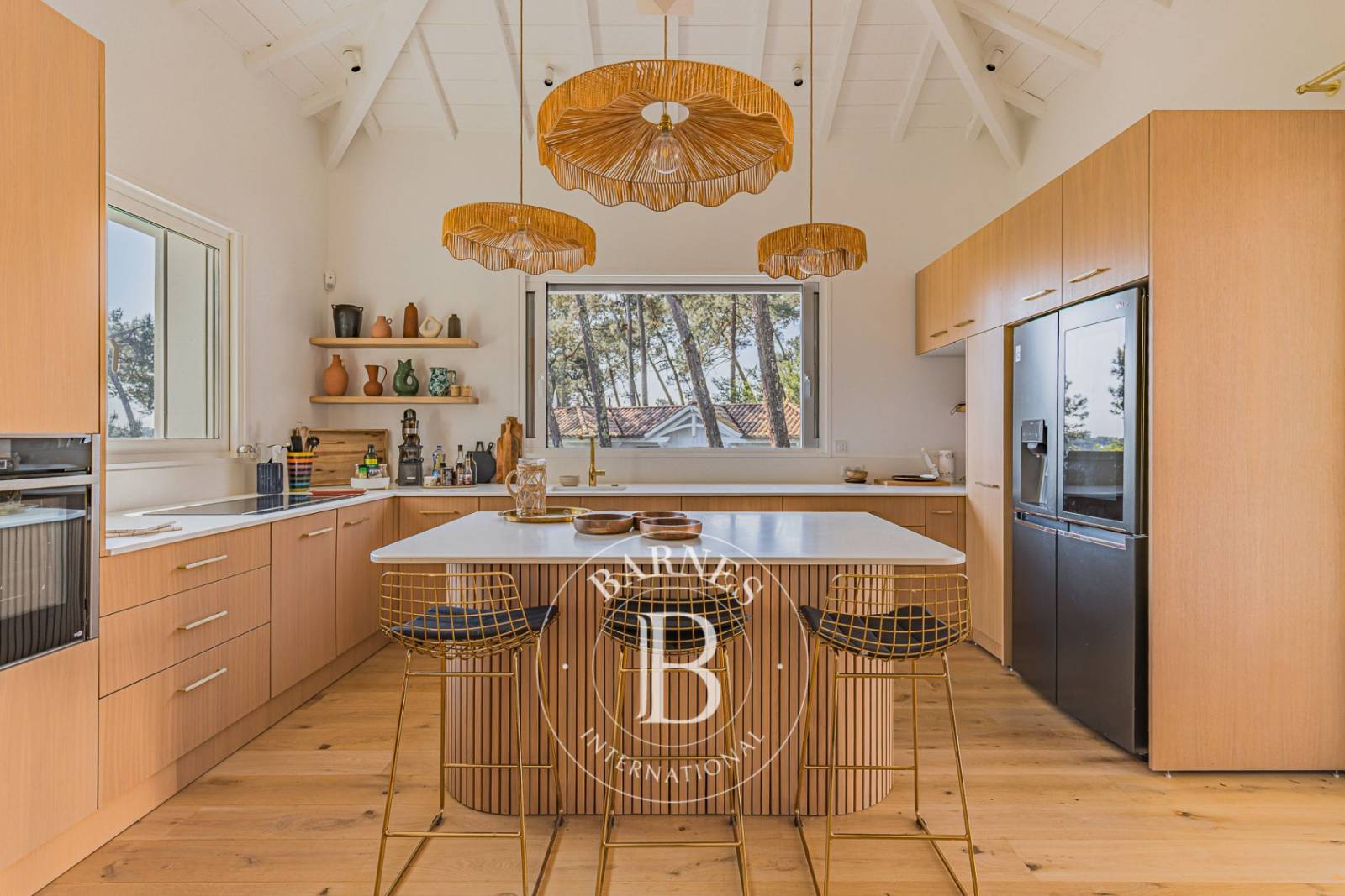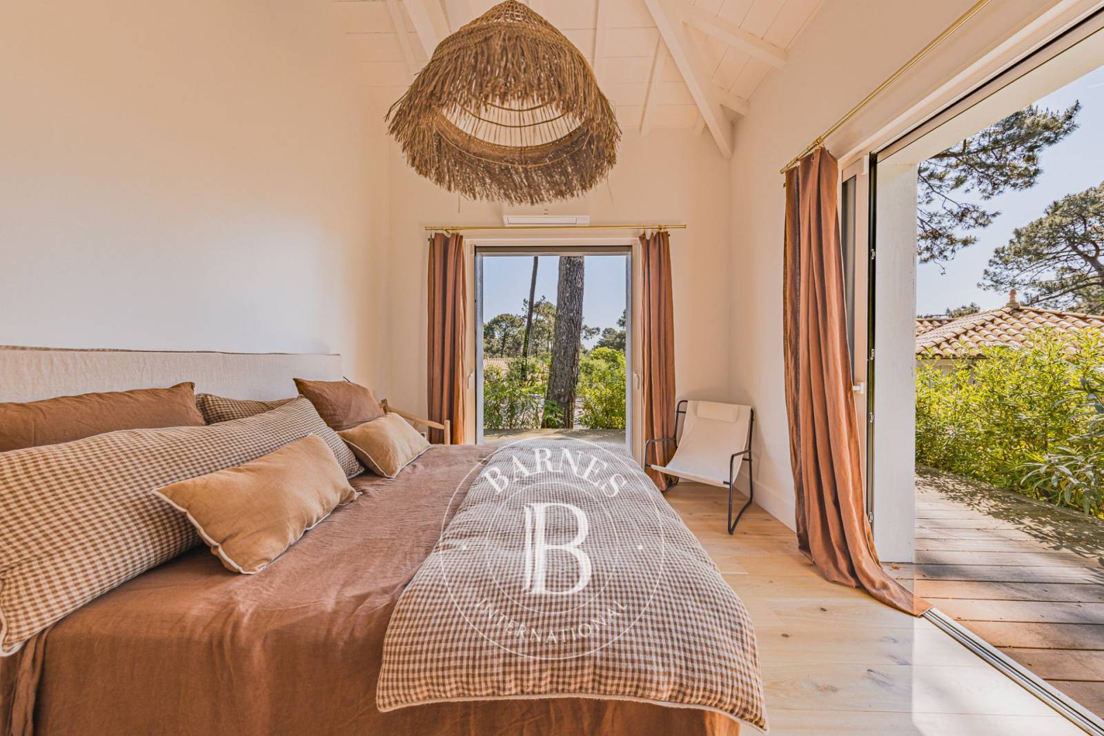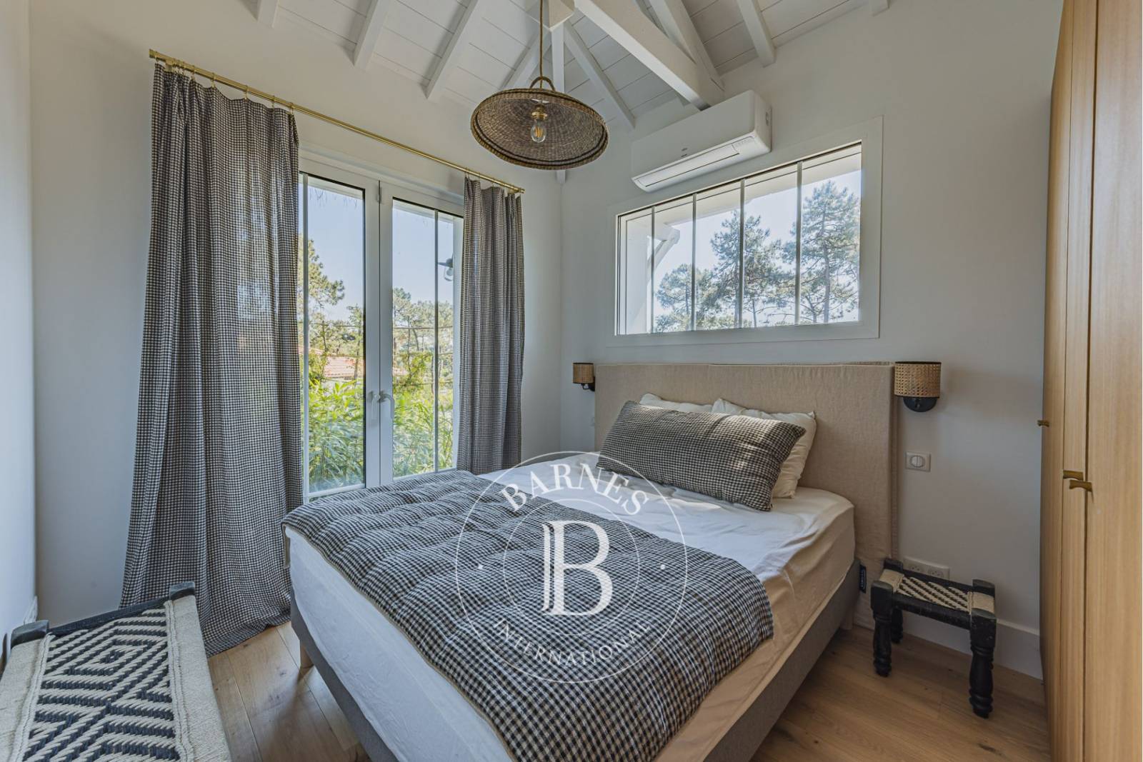 Ce bien rare bénéficie d’un environnement préservé, entouré de pins, avec une vue dégagée sur la forêt et un aperçu sur le Bassin d’Arcachon. Une localisation privilégiée, à quelques pas de l’ambiance authentique du village et du marché.