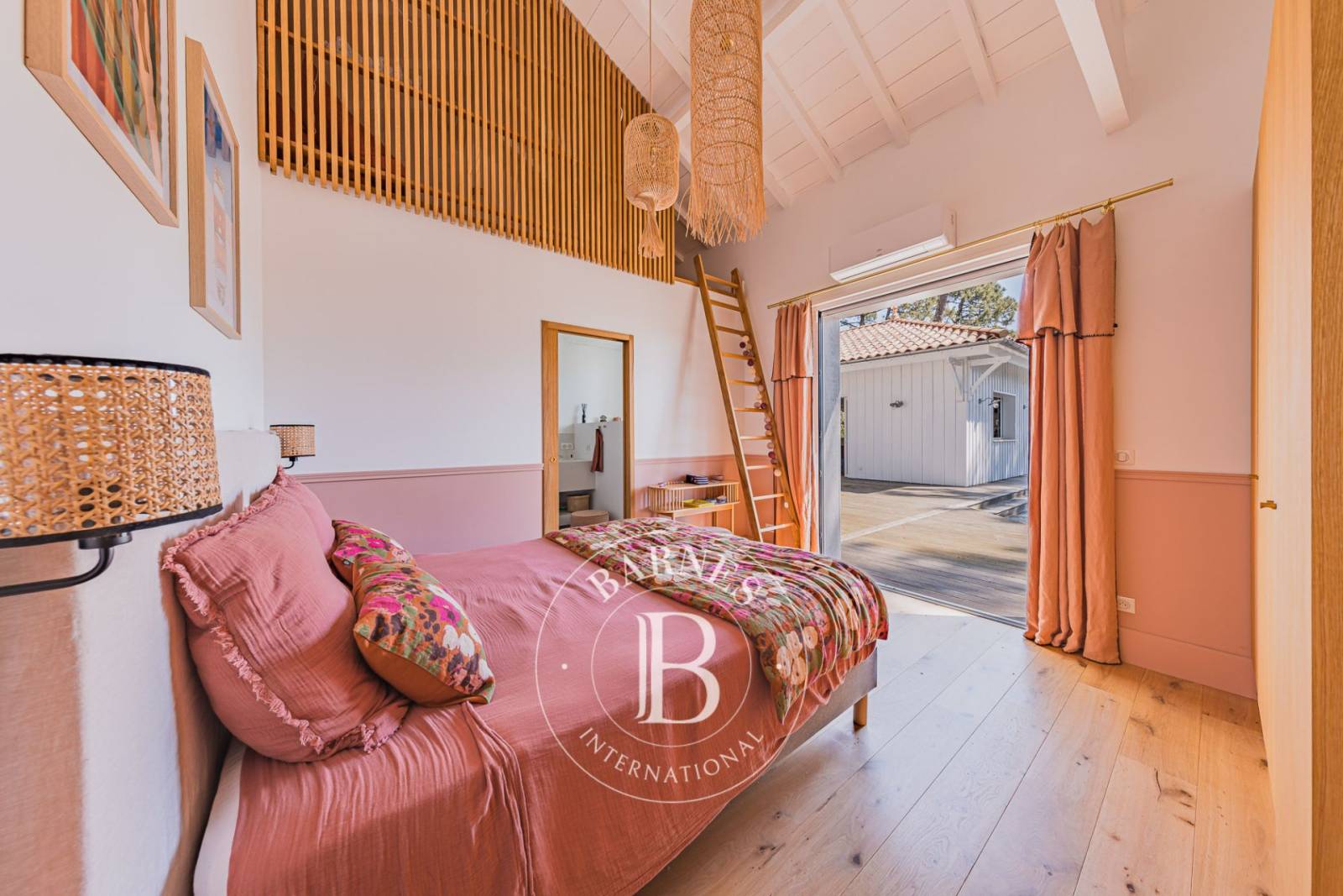 Côté nuit, trois chambres, dont une suite parentale, offrent chacune un espace intimiste et confortable. Deux chambres s’ouvrent directement sur la terrasse et bénéficient d’une vue dégagée sur le jardin. Toutes disposent de leur propre salle d’eau. Deux d’entre elles sont également agrémentées de mezzanines, apportant du charme et des espaces supplémentaires.