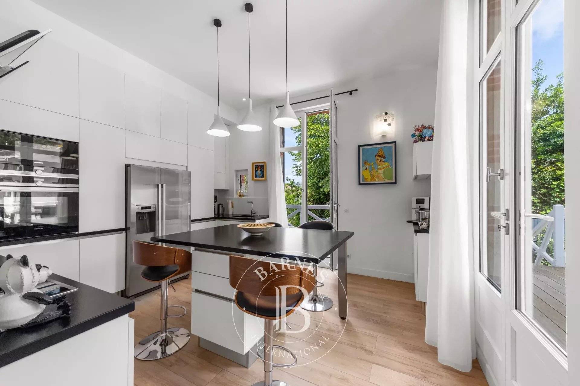 La villa, d'une superficie habitable de 160 m², a été entièrement rénovée avec des prestations haut de gamme, mettant en valeur l'utilisation de matériaux nobles. Son charme d'époque, caractérisé par de belles hauteurs sous plafond, un escalier magnifiquement rénové, crée une atmosphère unique.