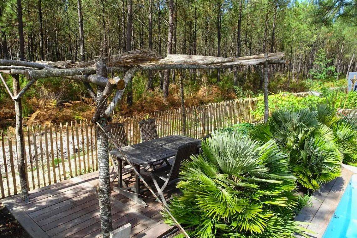 D'une conception remarquable, cette villa en bois, conforme aux normes RT2012 et érigée en 2016, vous accueille chaleureusement sur une parcelle de plus de 800 m², entourée d'une charmante pergola drapée de vigne vierge, procurant fraîcheur et ombre pendant les chaudes journées estivales. La piscine chauffée, dotée d'un volet immergé et d'un robot intégré, devient un havre de détente au cœur de la pinède.