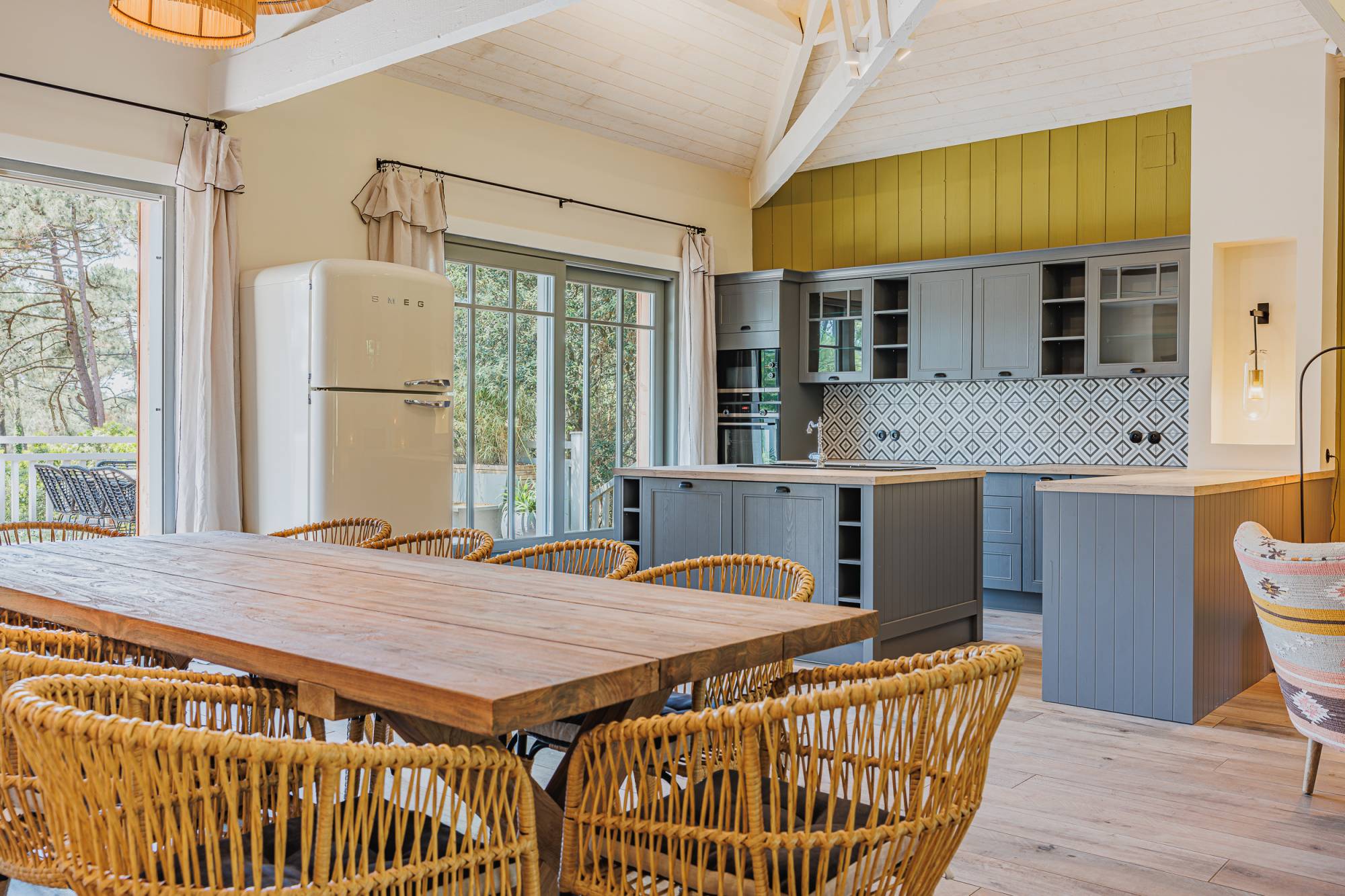 Pour profiter pleinement de la vie en extérieur, une cuisine d'été surplombe l'espace piscine, vous permettant de vous retrouver en toute intimité sur cette parcelle de 1250 m².