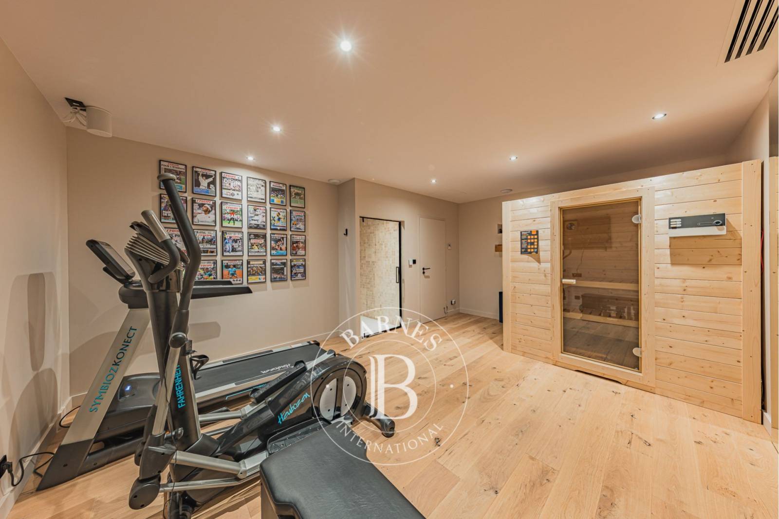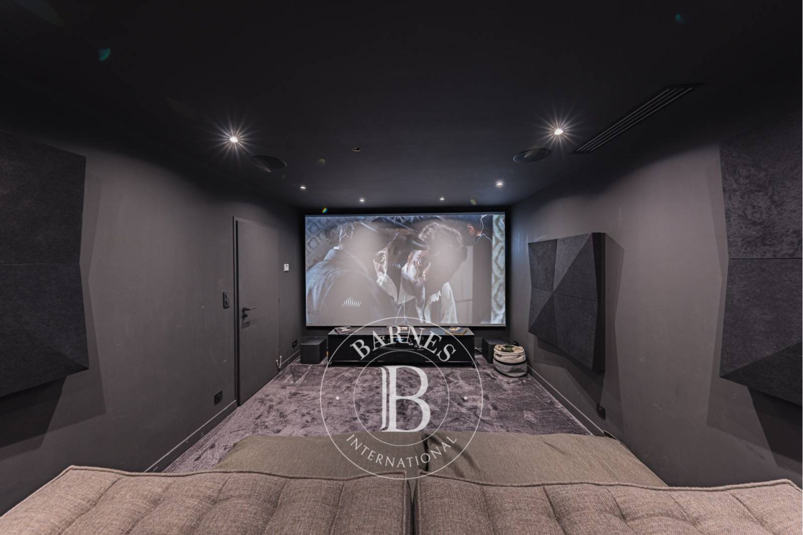 Le niveau inférieur a été conçu pour le plaisir de tous. Un dortoir pouvant accueillir jusqu’à quatre enfants dispose de sa propre salle de bains et d’un espace dédié aux jeux. Une salle de cinéma et une salle de sport viennent compléter les équipements. Une buanderie et un garage ajoutent un réel confort au quotidien.