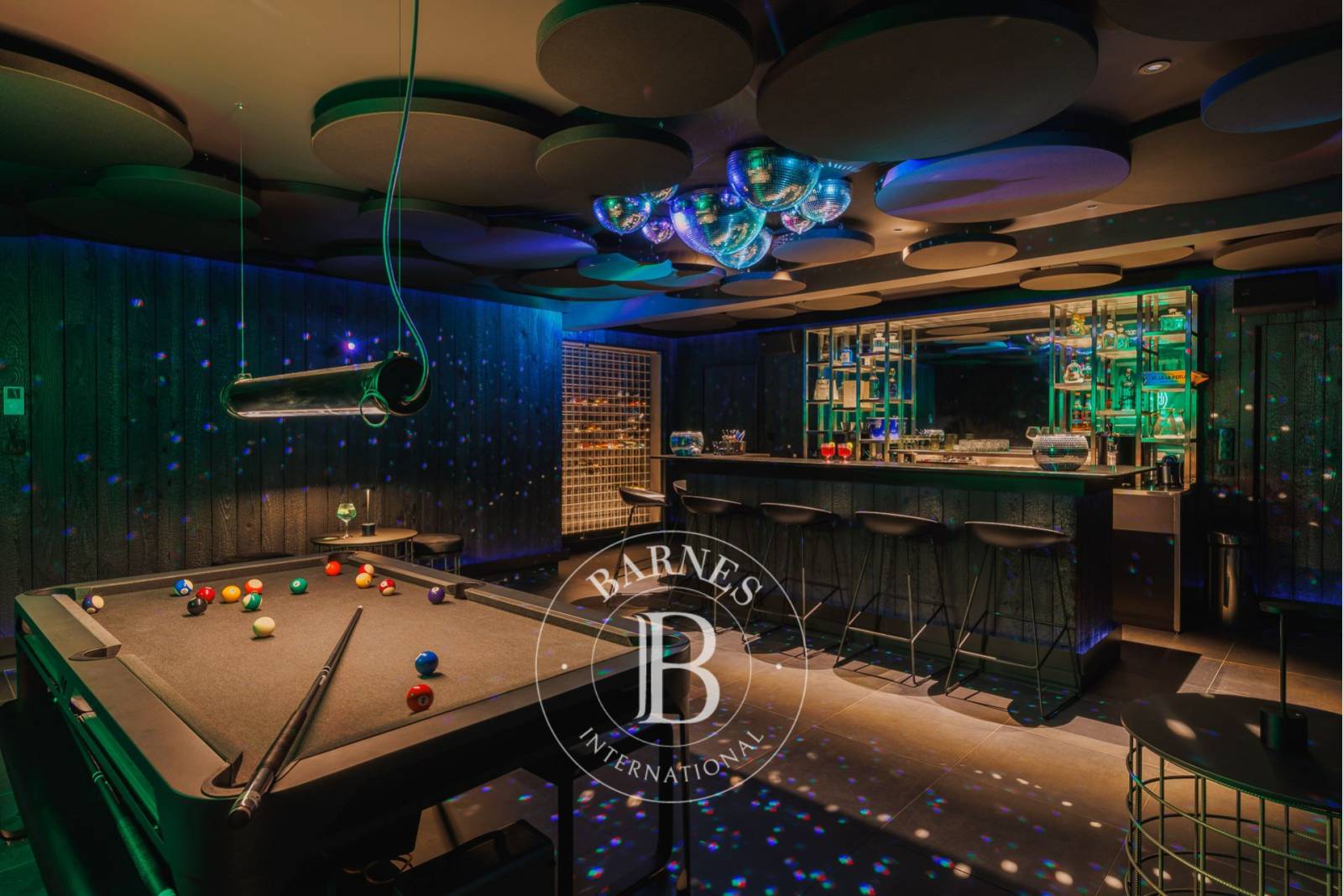À l’extérieur, la piscine chauffée et sécurisée s’intègre parfaitement au cadre naturel. Des bains de soleil bordent les abords pour profiter pleinement des journées ensoleillées. Une grande table haute permet de partager des repas en toute convivialité, tandis que la cuisine d’été avec coin bar offre un espace idéal pour prolonger les soirées. Un vaste jardin clos, sans vis-à-vis, assure calme et intimité.
