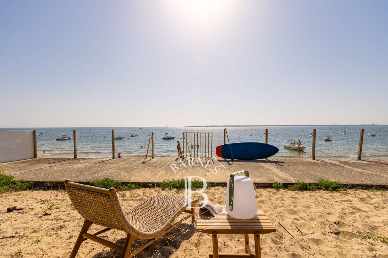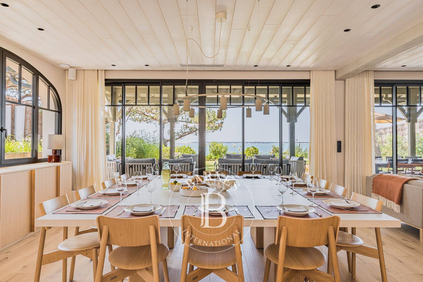 Offrant un cadre de vie exceptionnel avec un accès direct à la plage, cette propriété de 450 m², entièrement rénovée avec des matériaux d’exception, promet un séjour unique sur le Bassin d’Arcachon.