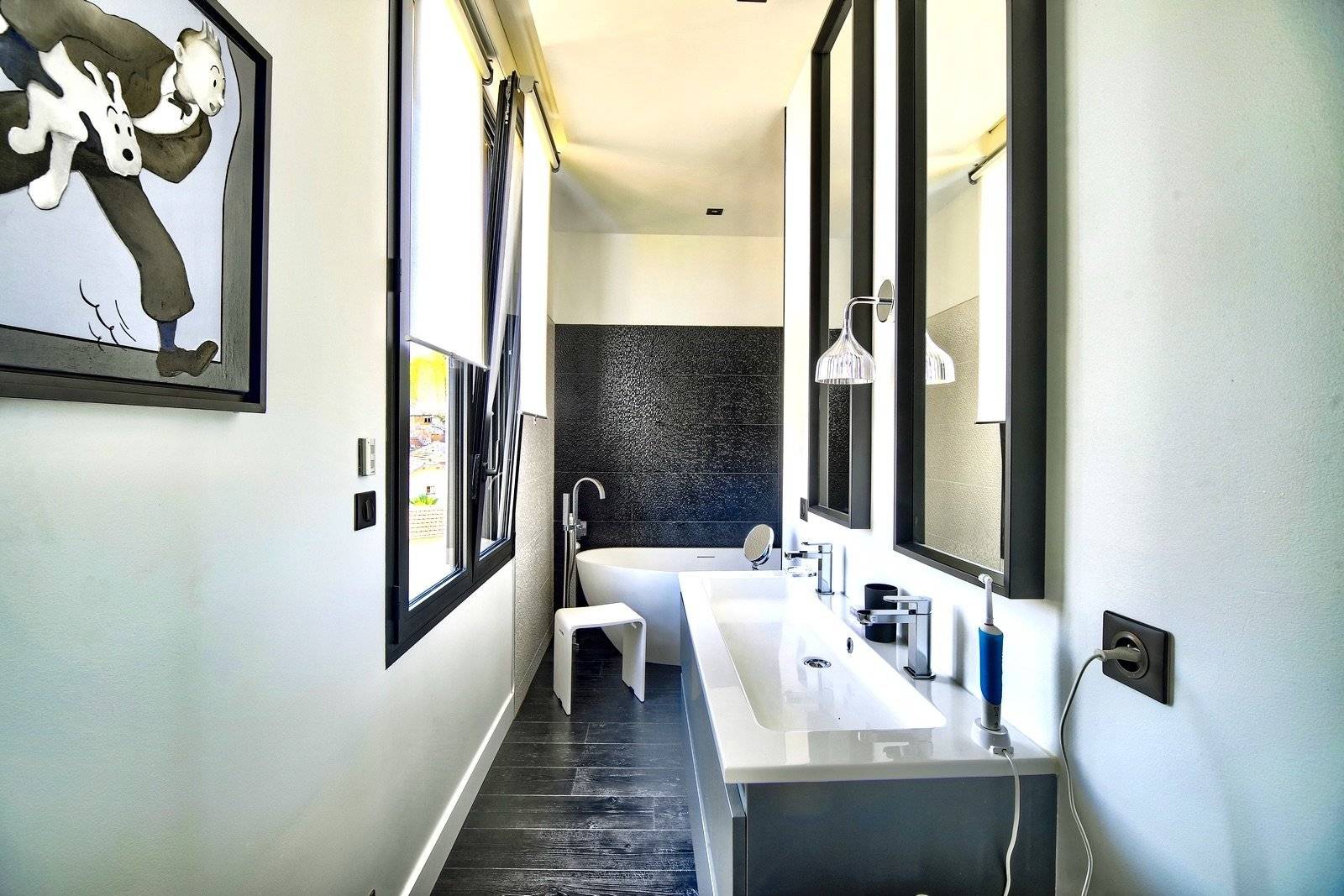 La villa dispose de 5 chambres, chacune avec sa salle d'eau privative, offrant à ses occupants un confort absolu. La suite parentale, quant à elle, constitue un véritable havre de paix avec sa salle de bains et son dressing, créant un espace intime et relaxant.