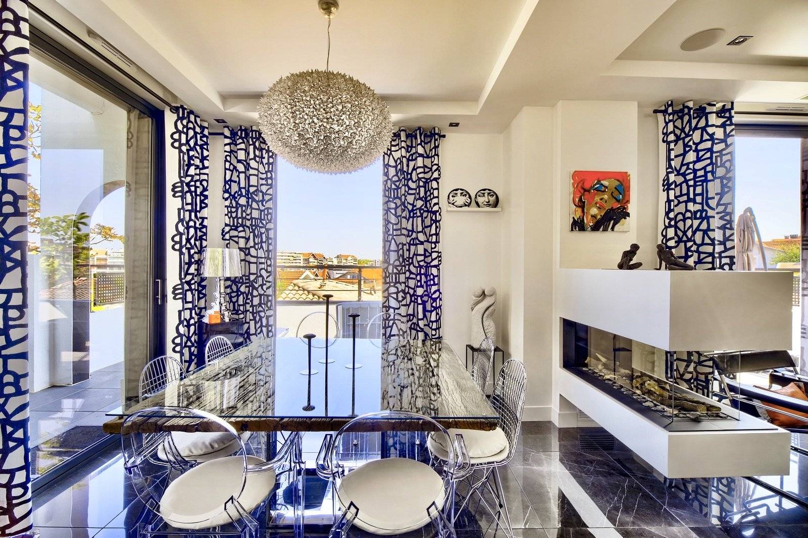 Dès l'entrée, une harmonie parfaite entre intérieur et extérieur se révèle. Le séjour, baigné de lumière, s'ouvre sur une terrasse qui dévoile une vue imprenable sur Arcachon.