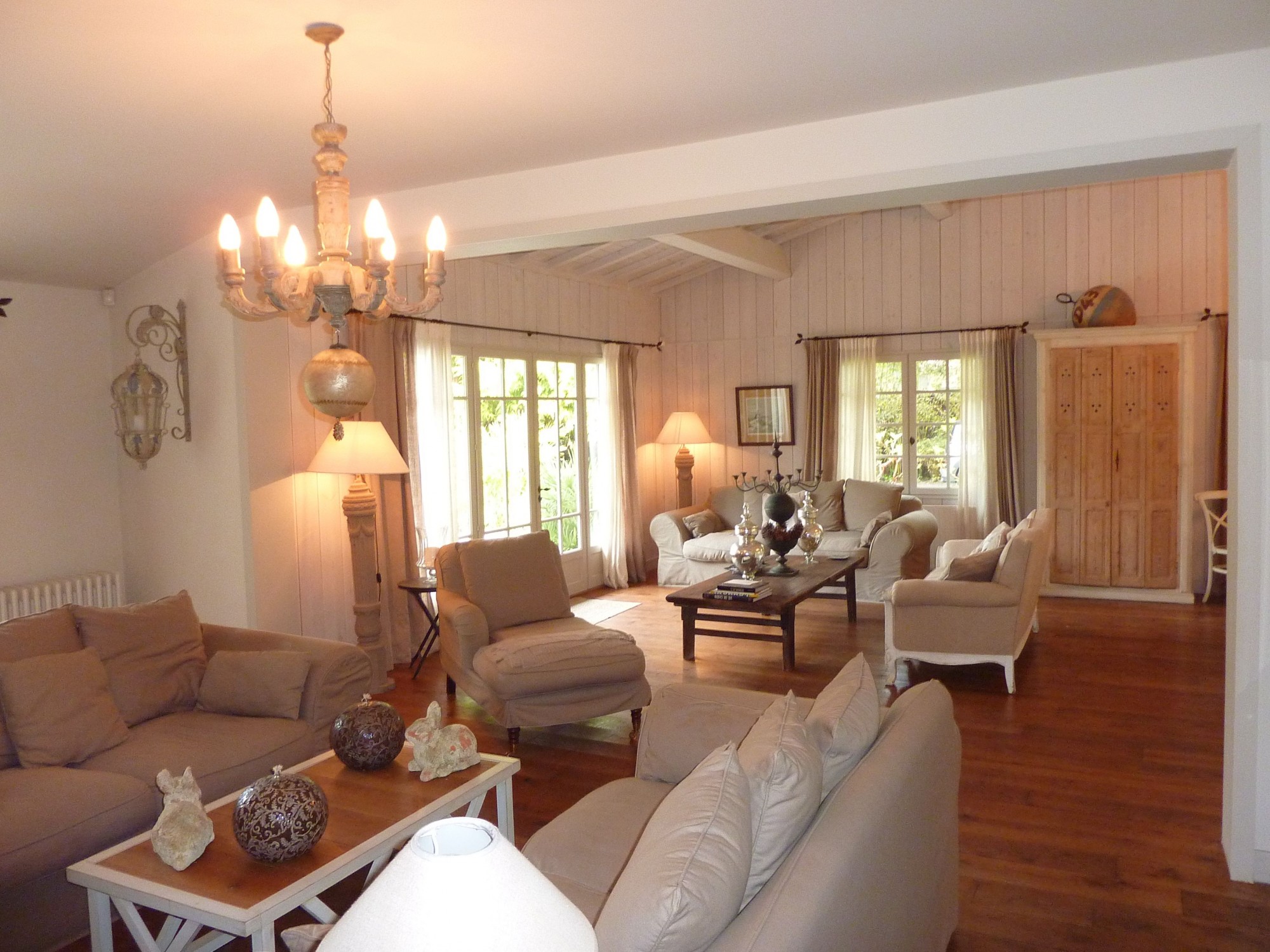 Cuisine équipée, séjour avec cheminée et parquet ciré, 6 chambres, 1 salle de bains master avec sauna et douche, 4 salles d'eau avec wc. Prestations haut de gamme, État exceptionnel...