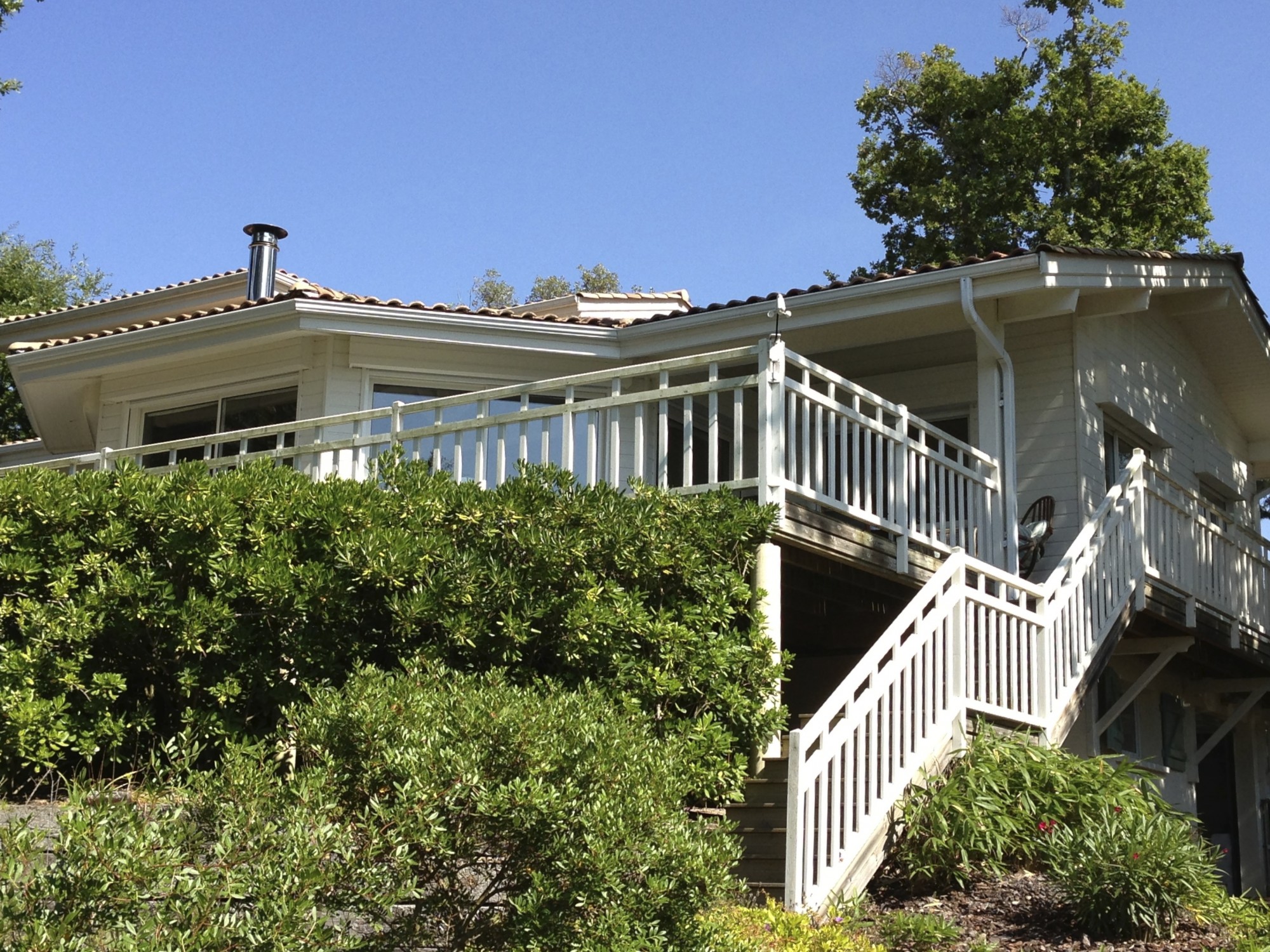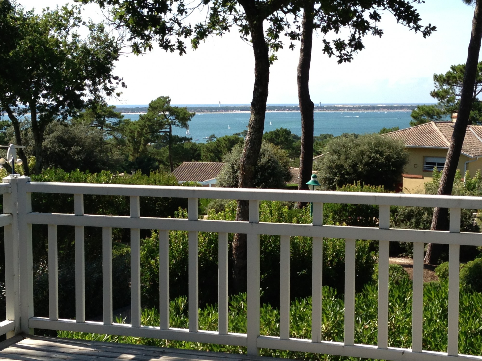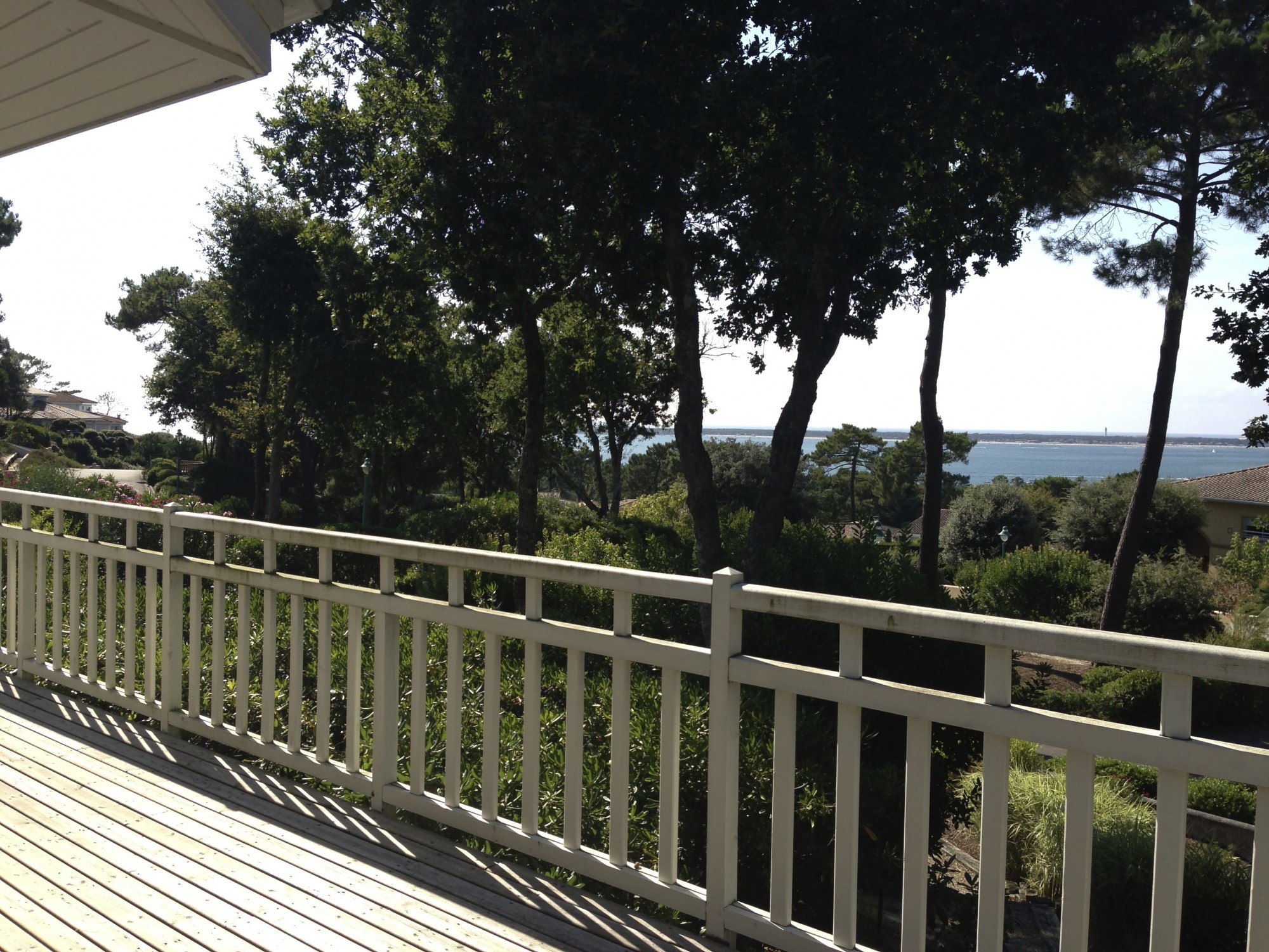 De part sa position dominante sur les hauteurs de l'Eden du Pyla - secteur Cercle de Voile, le vaste deck de 70 m2 offre une vue unique sur la mer.