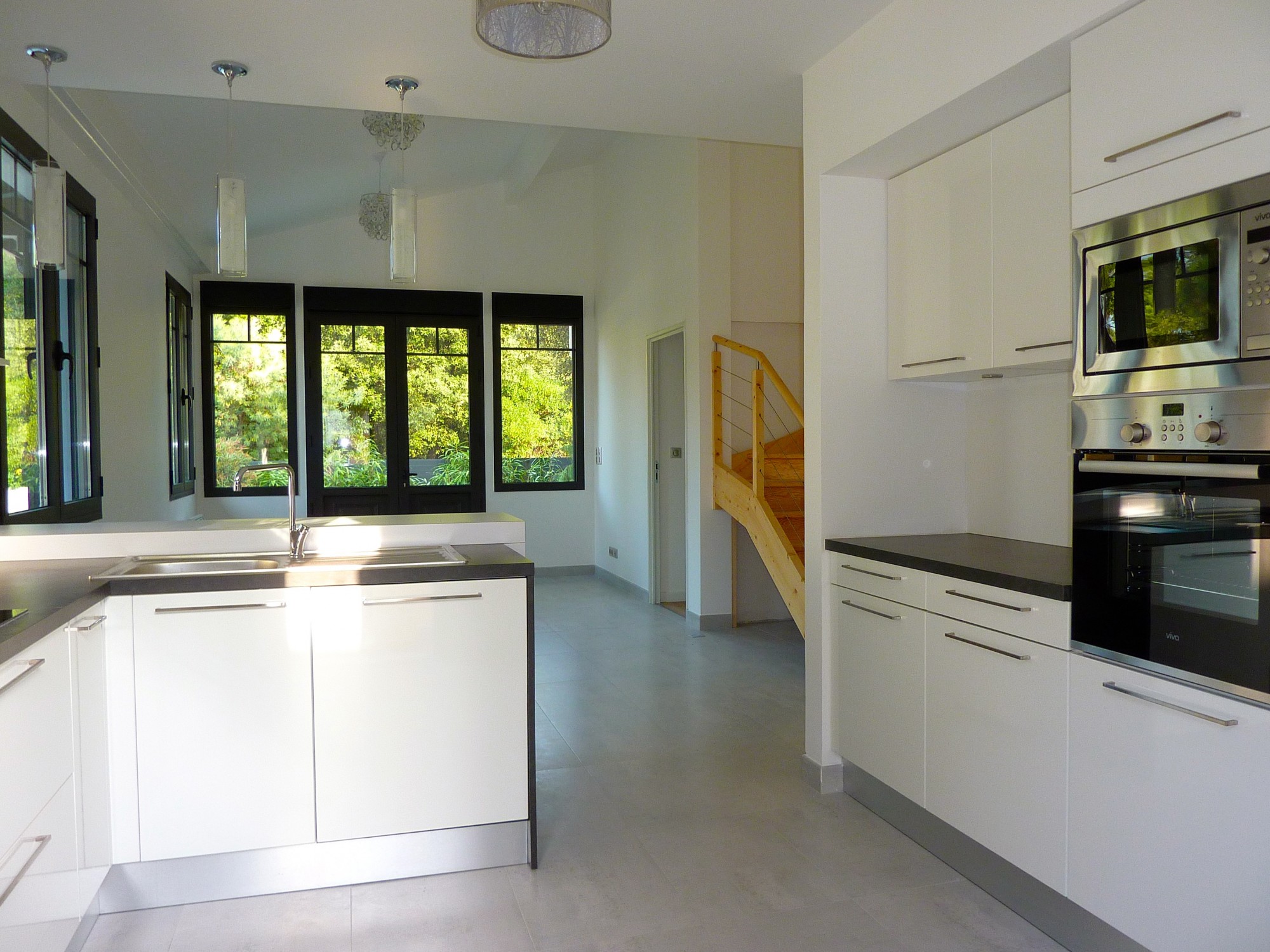 À proximité immédiate du très prisé quartier du Moulleau, petite villa de type basque entièrement rénovée : séjour traversant avec cuisine design ouverte et équipée, 4 chambres avec placards et penderies, 2 salles d'eau, buanderie, cave, jardin.
