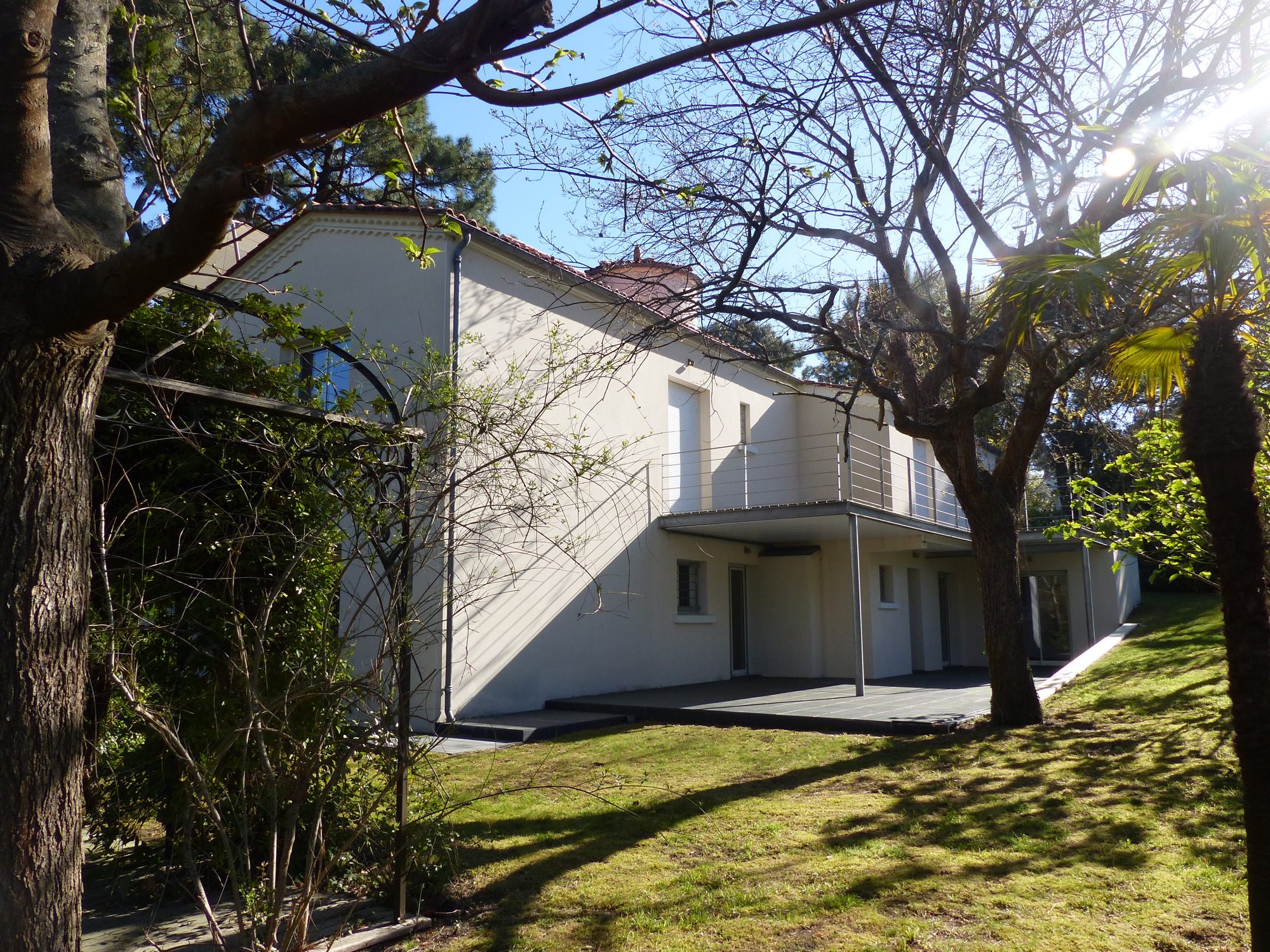 À quelques mètres de la plage et à proximité des commerces et du Moulleau, grande villa d'architecte.