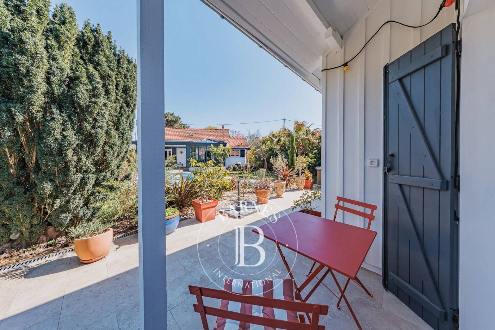 Le terrain clos de 800 m², magnifiquement paysagé avec arrosage automatique, accueille une piscine au sel ainsi qu’une annexe comprenant une salle de sport ou chambre, une chambre supplémentaire, une salle d’eau et des toilettes. Un bien rare au cœur du Bassin d’Arcachon, alliant prestige et charme.