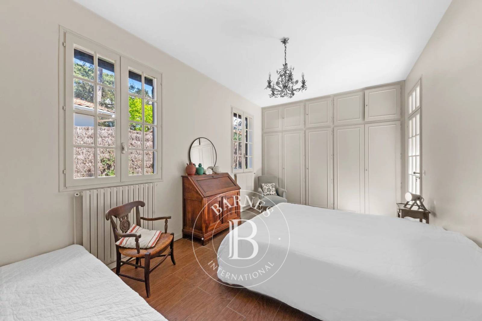 Implantée sur une parcelle boisée et piscinable de 850 m², la maison séduit par son architecture typique de la région et son atmosphère chaleureuse. Le double séjour s’ouvre sur une terrasse exposée ouest, idéale pour prolonger les journées à l’extérieur et profiter des fins d’après-midi ensoleillés sur le Bassin d’Arcachon.