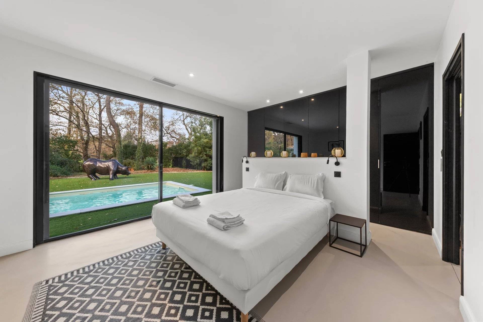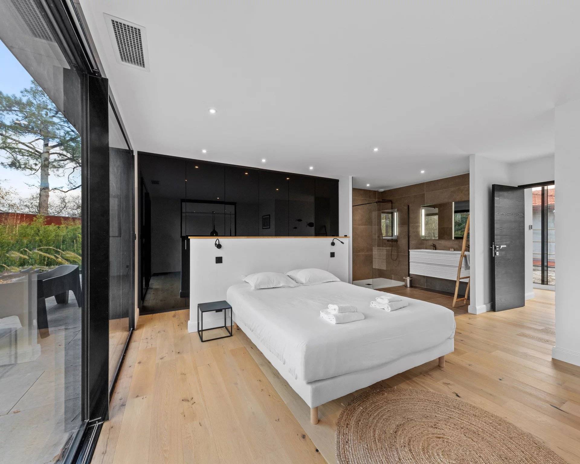 La partie nuit comprend quatre suites, chacune avec salle d’eau et dressing. L’agencement offre à la fois confort, indépendance et fonctionnalité.