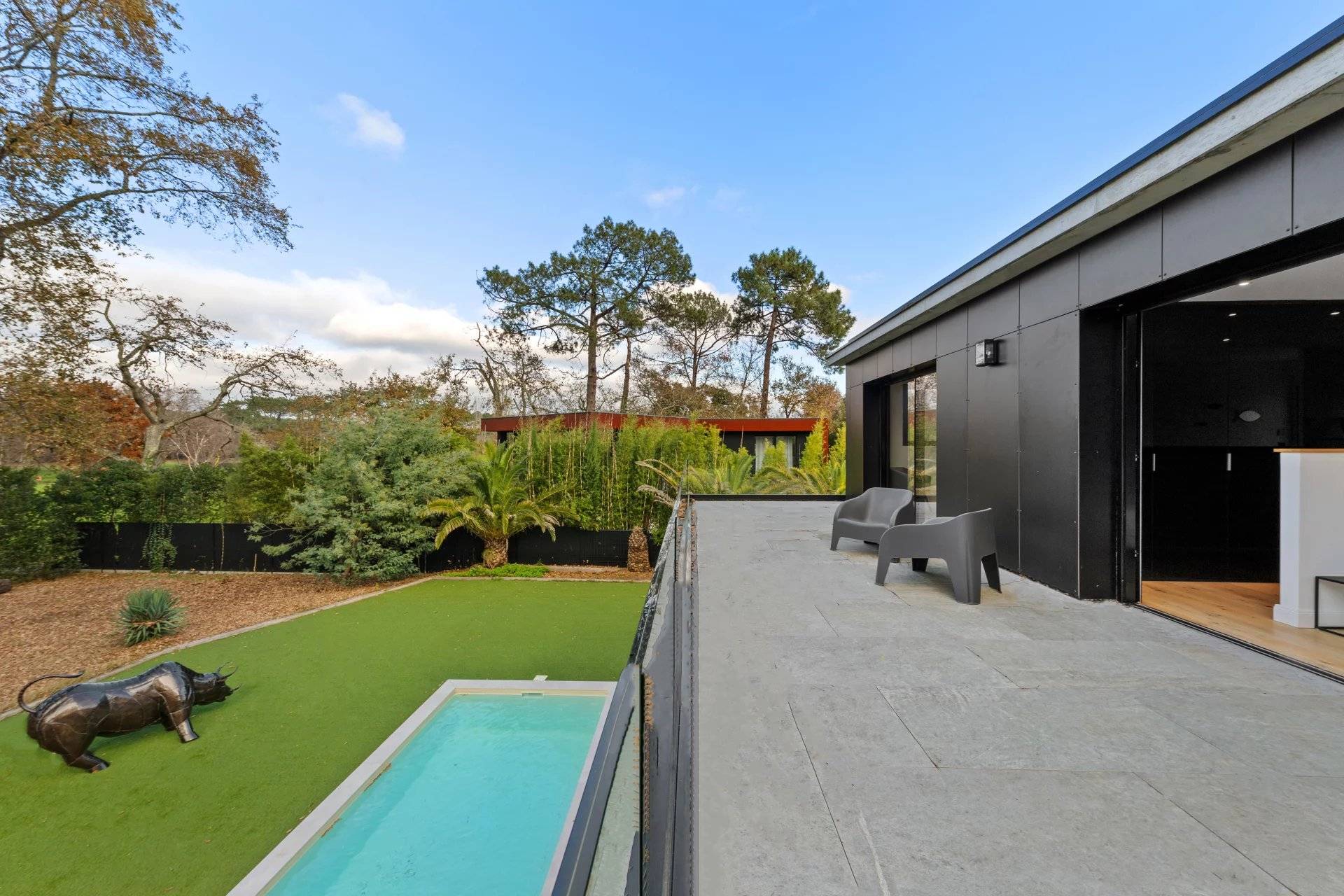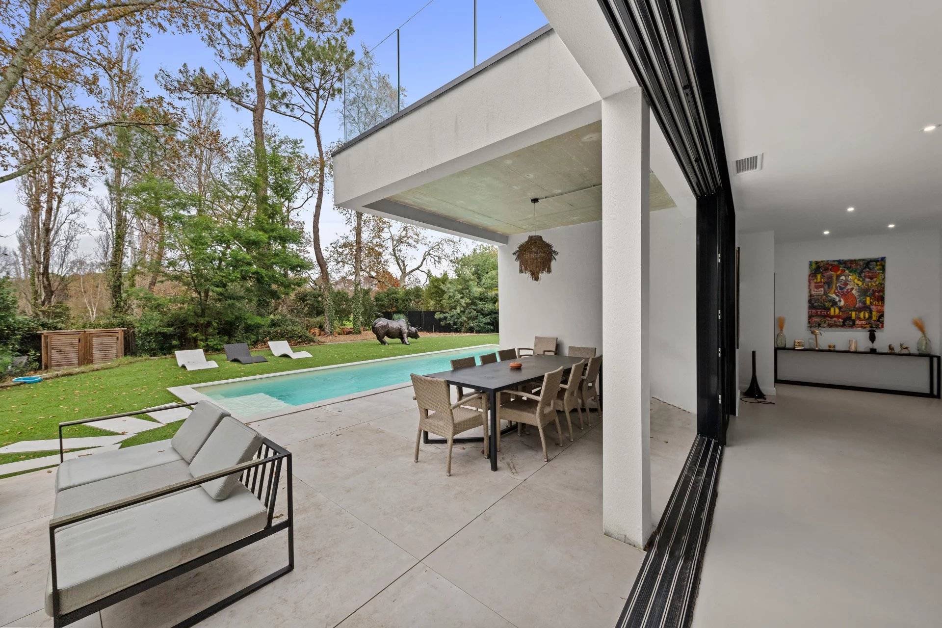 À l’extérieur, le terrain d’environ 1 200 m² abrite une grande terrasse, une piscine, un garage et des espaces soigneusement aménagés, sans vis-à-vis.