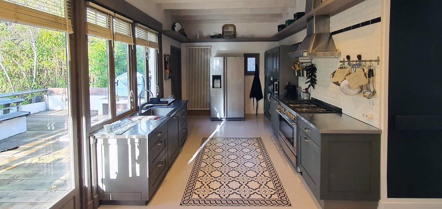 - cuisine aménagée et équipée avec son coin repas, le tout ouvert et accessible depuis la vaste terrasse bois et sa vue sur le Canal,