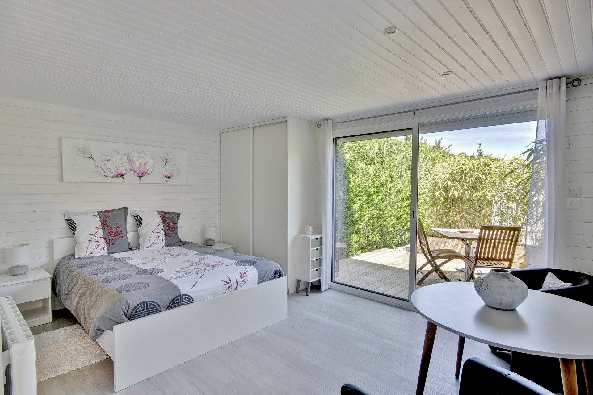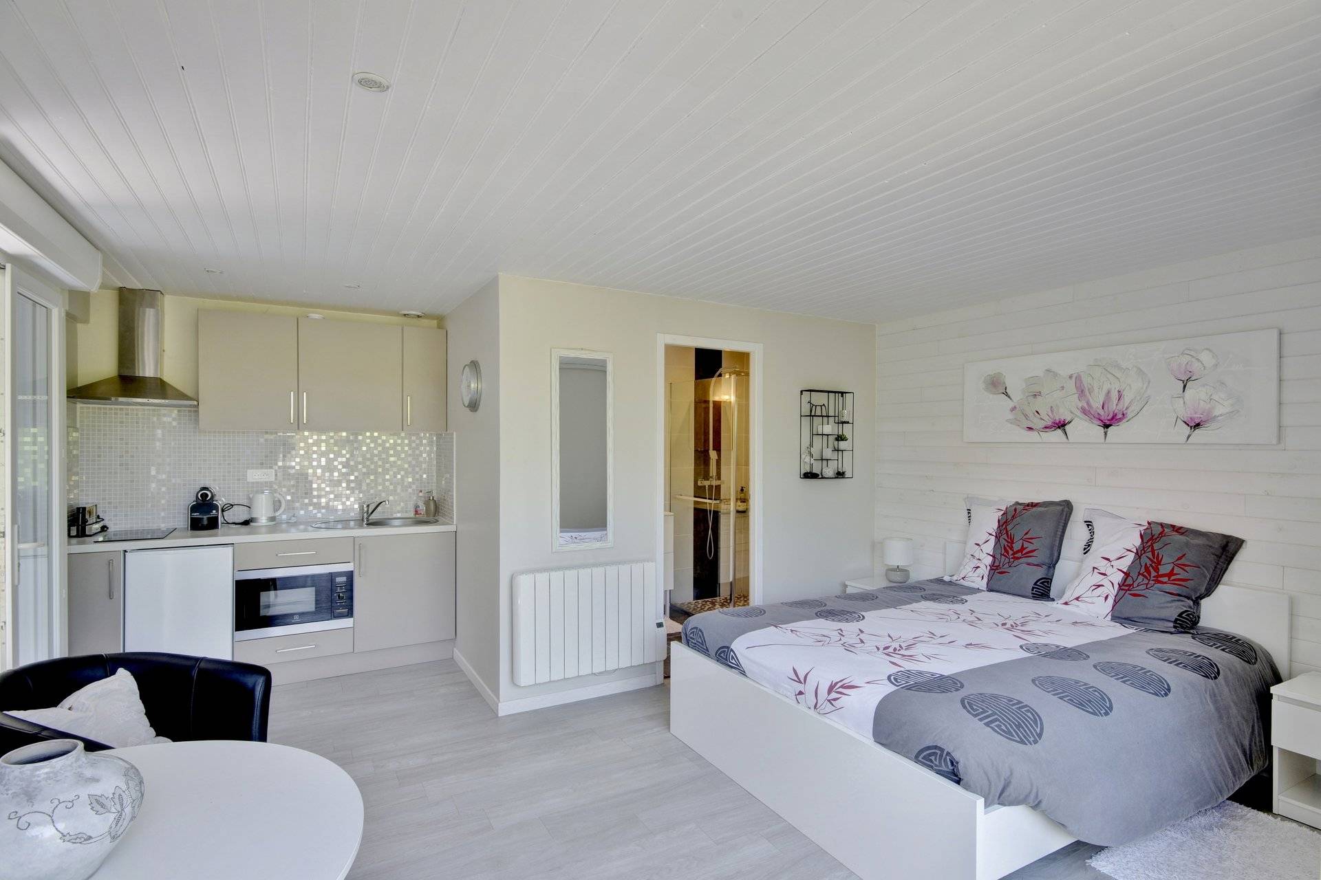 - Une dépendance dans laquelle a été aménagé un joli studio entièrement équipé ainsi qu'un local de rangement,