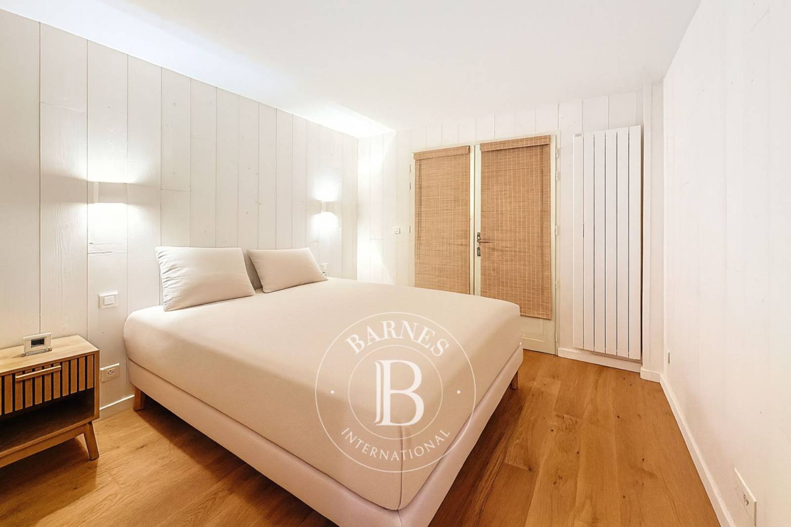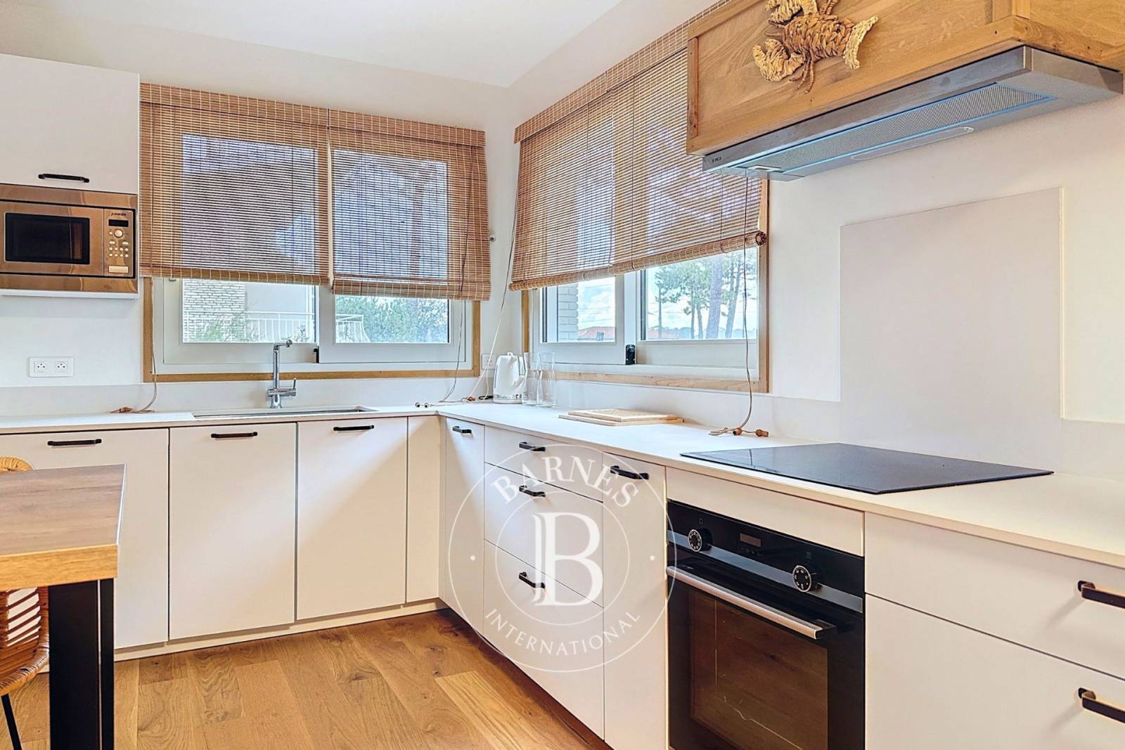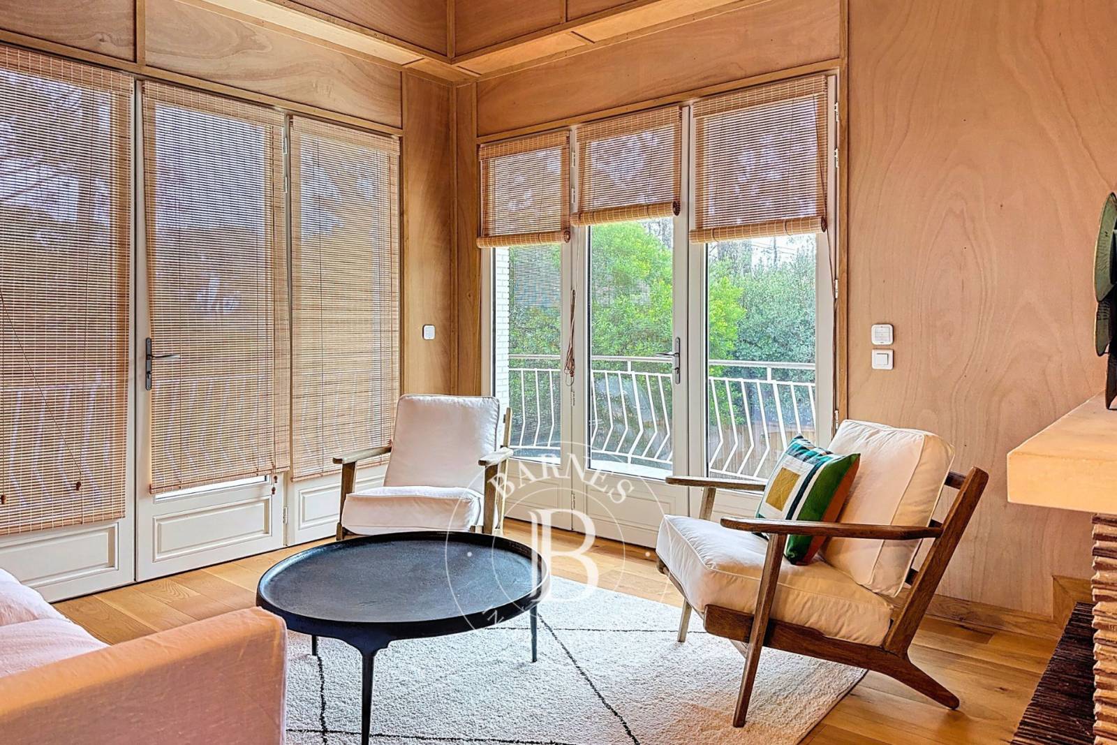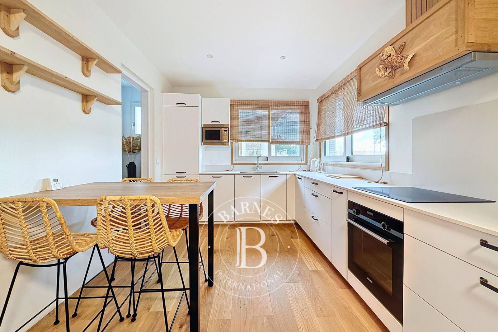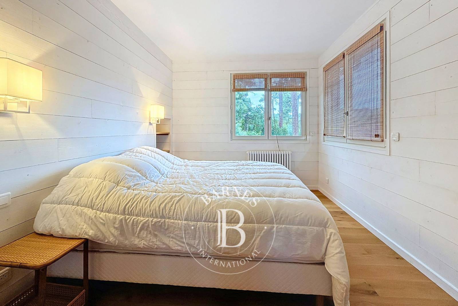 Répartie sur deux niveaux, elle propose en rez-de-jardin quatre chambres, deux salles d’eau, une salle de bains, des toilettes séparés et une buanderie. Ces espaces s’ouvrent sur la terrasse et la piscine.