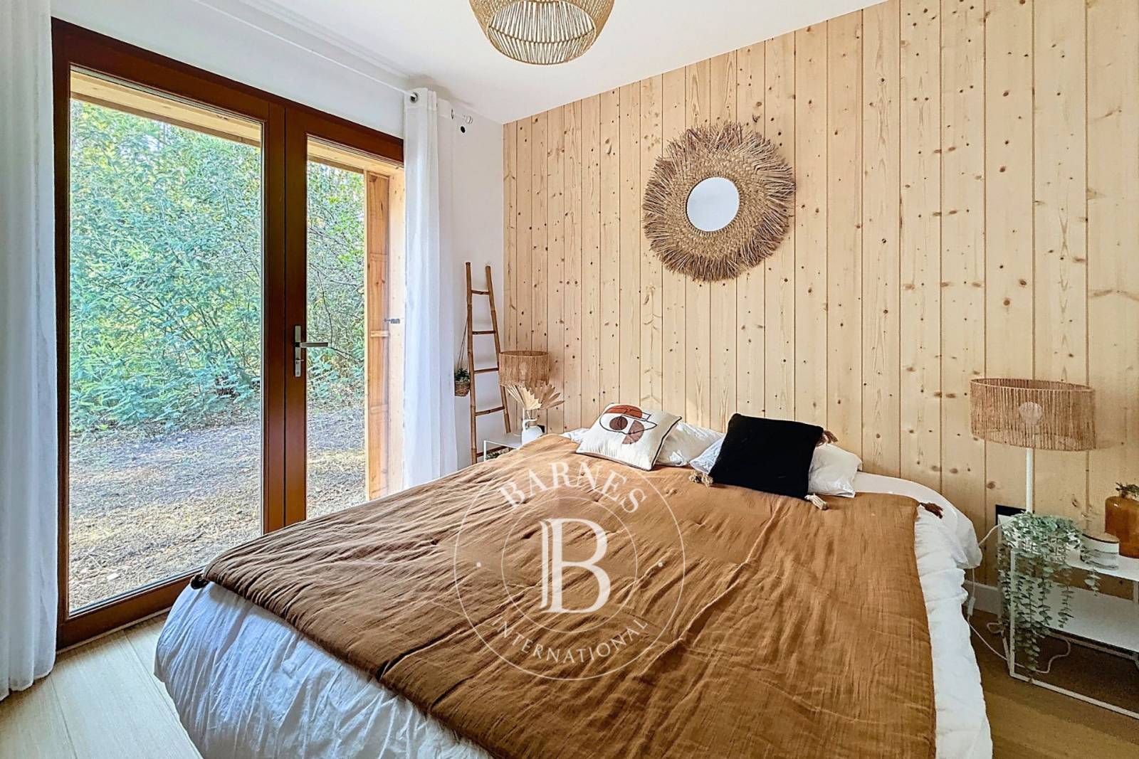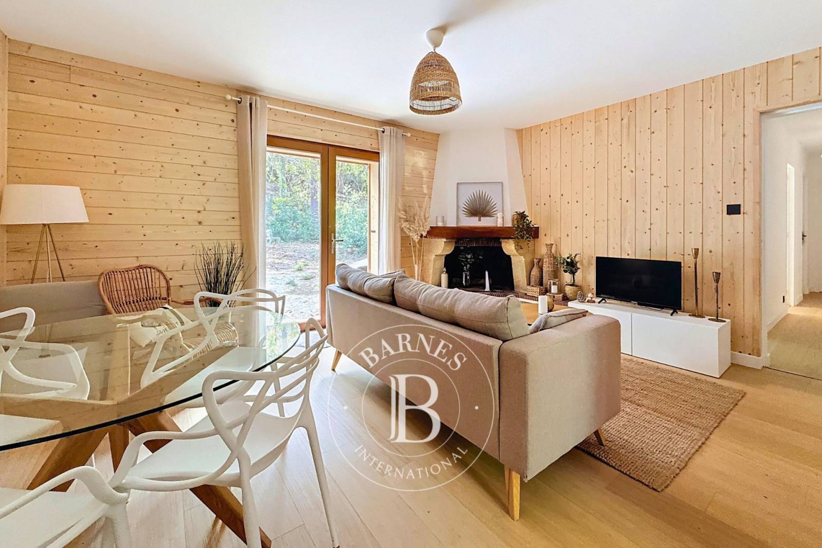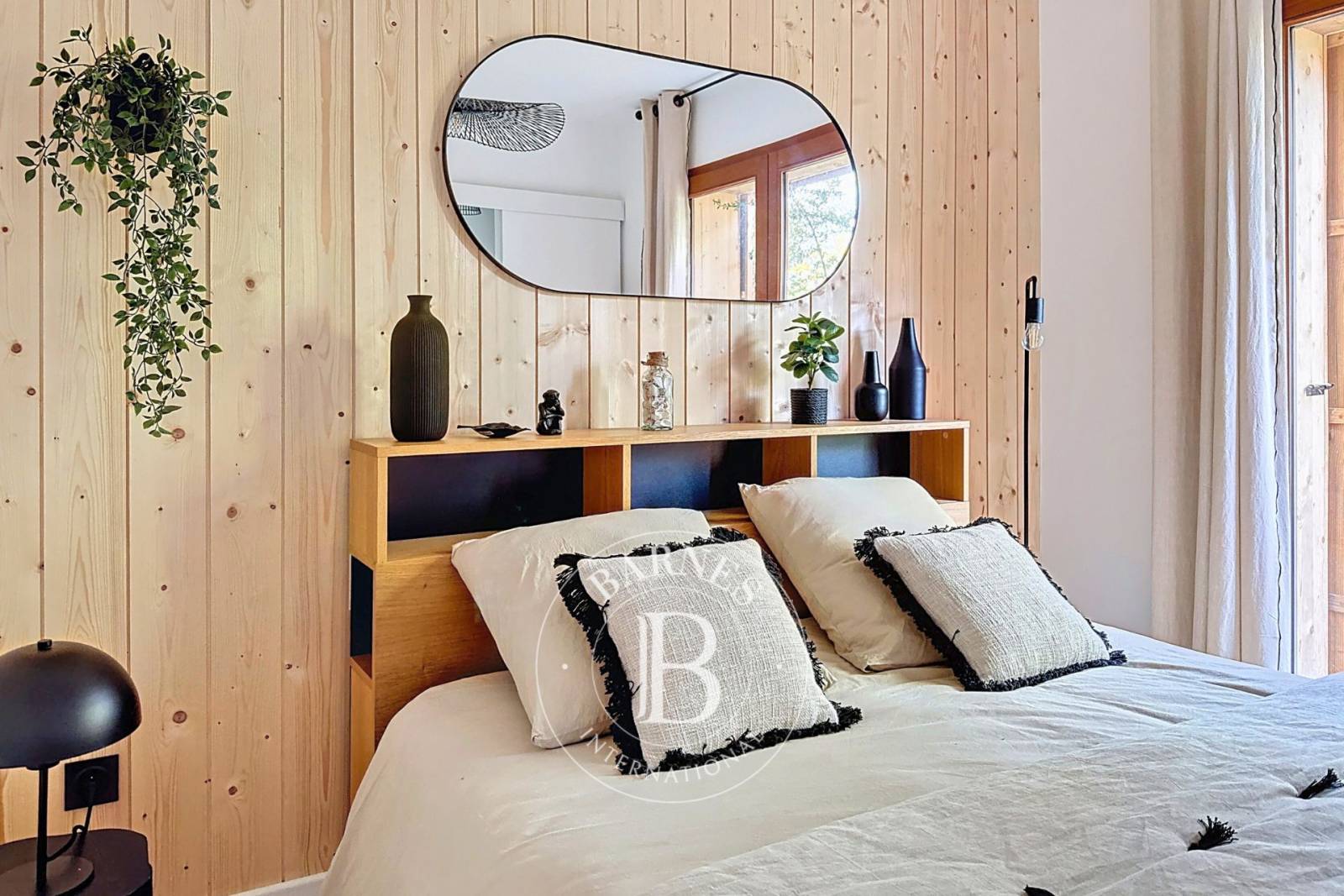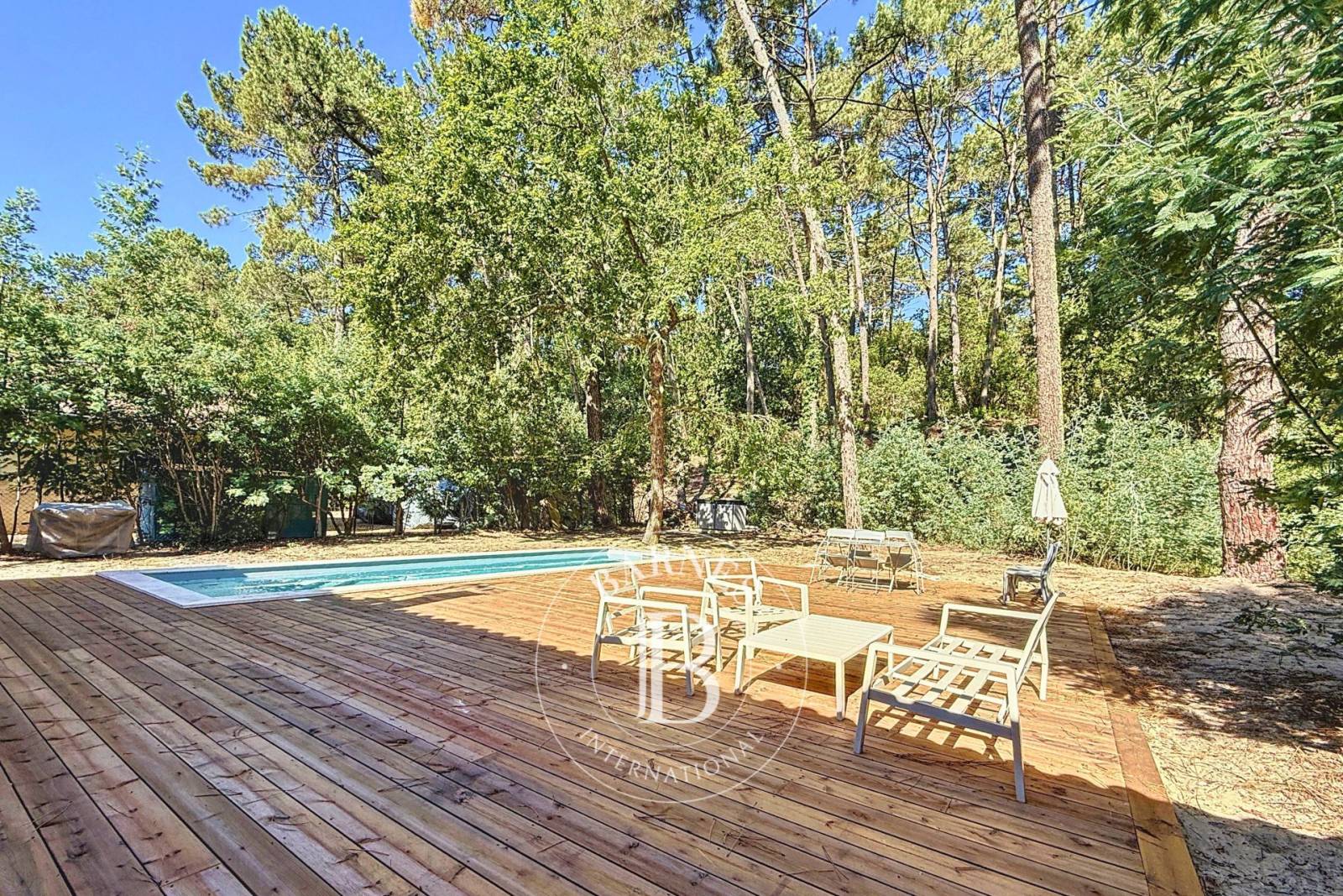 Le jardin, soigneusement aménagé, accueille une piscine et plusieurs zones propices à la détente. L’ensemble est fonctionnel, facile à entretenir, et parfaitement adapté à une résidence principale comme secondaire sur le Bassin d’Arcachon.