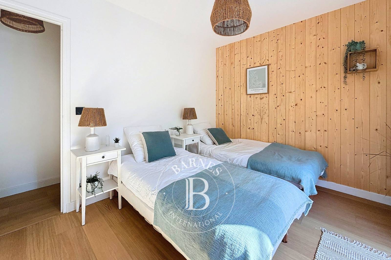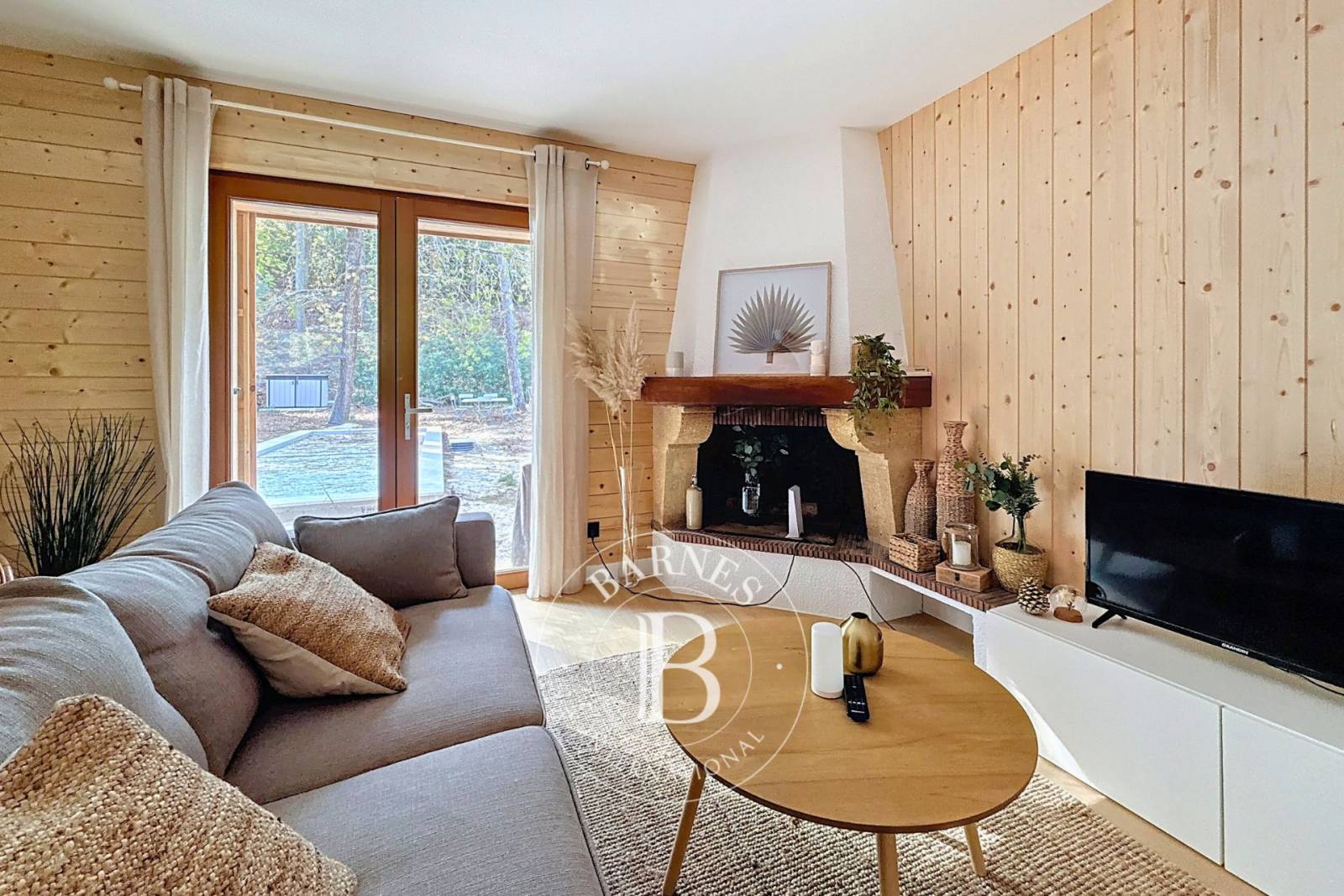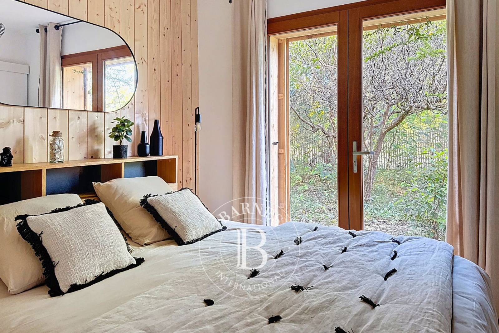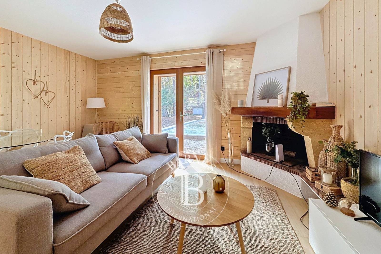 Le jardin, soigneusement aménagé, accueille une piscine et plusieurs zones propices à la détente. L’ensemble est fonctionnel, facile à entretenir, et parfaitement adapté à une résidence principale comme secondaire sur le Bassin d’Arcachon.