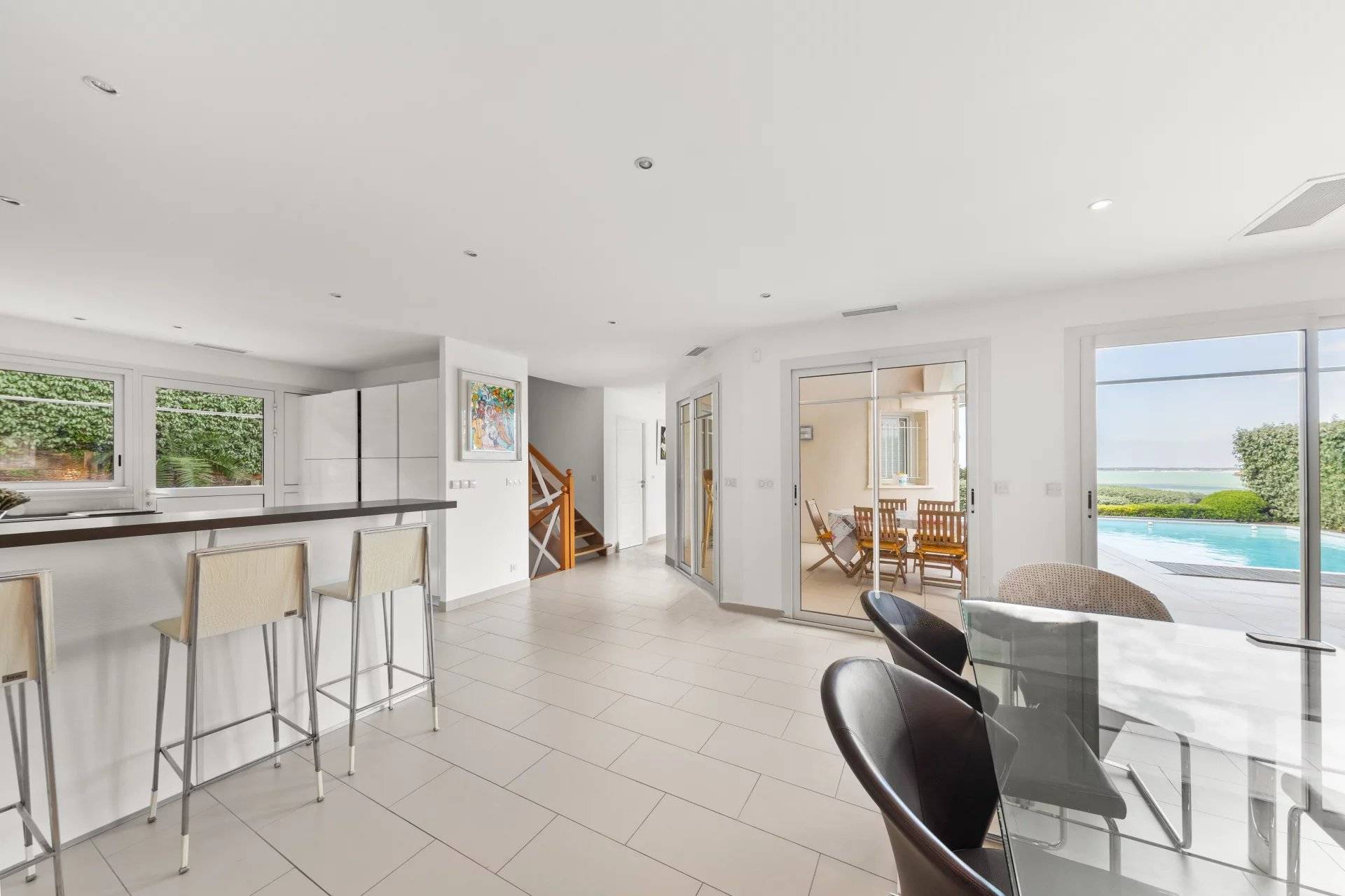 Dès l'entrée, laissez-vous séduire par un hall accueillant qui vous mène vers un séjour lumineux s'ouvrant sur la piscine, accompagné d'une cuisine entièrement équipée.