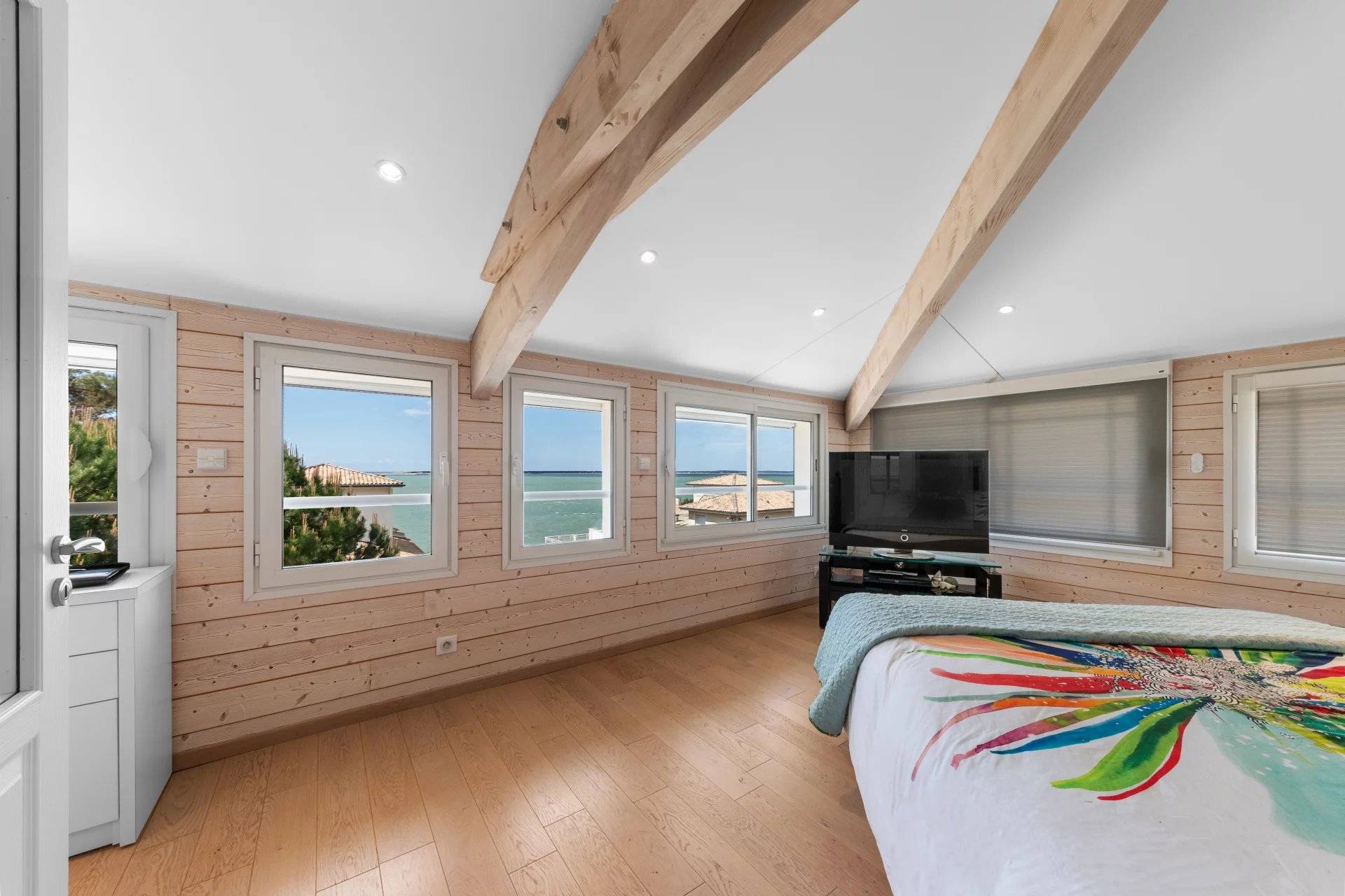 À l'extérieur, vous trouverez une piscine chauffée de 8x5 mètres, des balcons ainsi qu'un solarium offrant une vue panoramique sur la mer, vous invitant à profiter pleinement des beaux jours. Une véritable oasis de tranquillité et de confort au cœur de Pyla-sur-Mer.